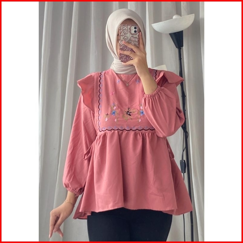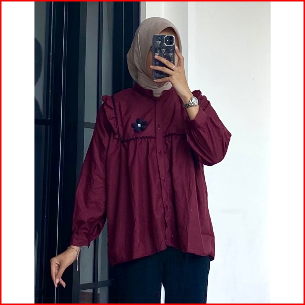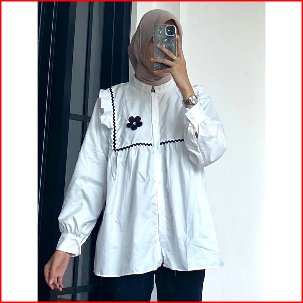 Rahms - Narika Shirt Atasan Wanita Muslim Katun Premium Ootd Korean Style Top Blouse Katun Bordir Bunga Babydoll Variasi