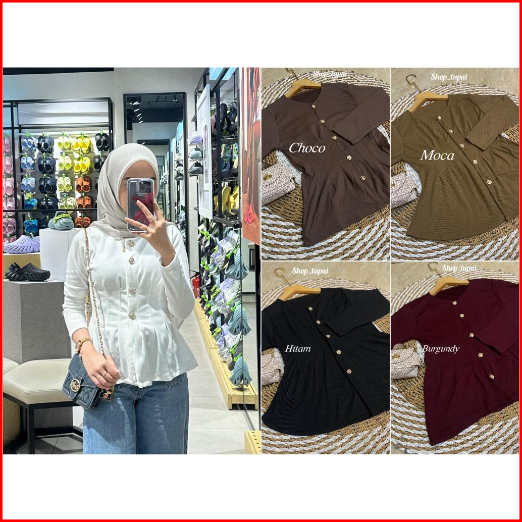 Arina Blouse Knit Atsan Premium Body Slim Fit Blouse Lengan Panjang