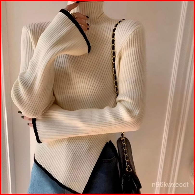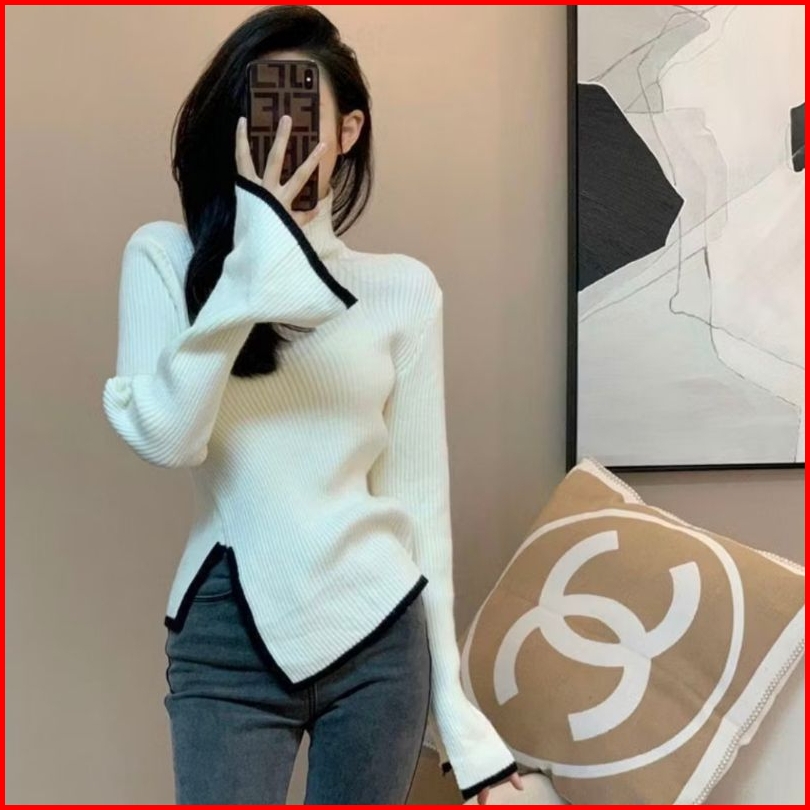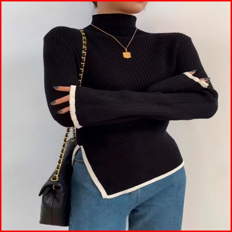 Silvia Atasan Knit Rajut Wanita Turtle Neck Kerah Tinggi Top Blouse Inner Baju Atasan Sweater Knit Rajut Lengan Panjang