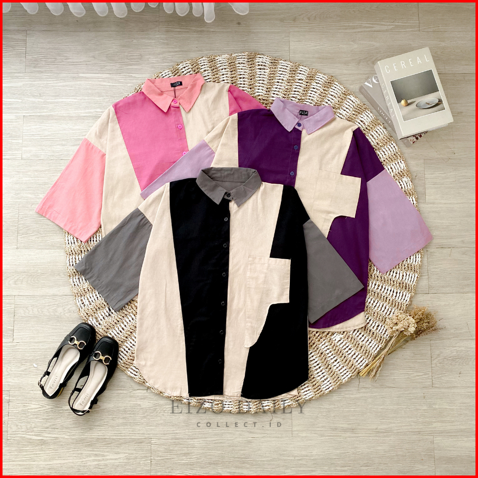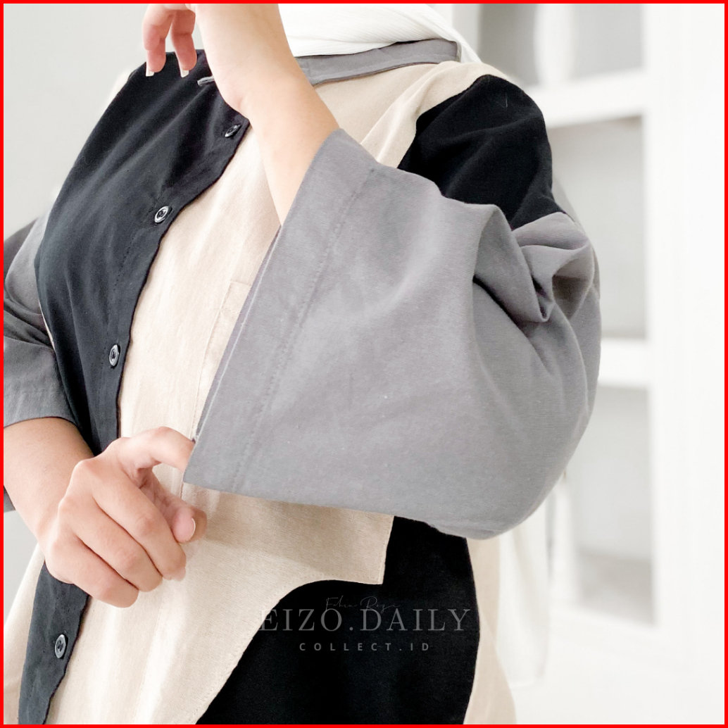 Maiza Shirt Atasan Kemeja Oversize Wanita Casual Kekinian Korean Style Busui Frendly Linen Premium