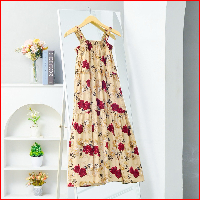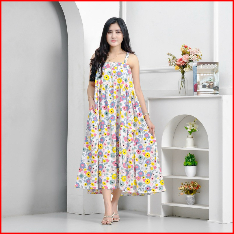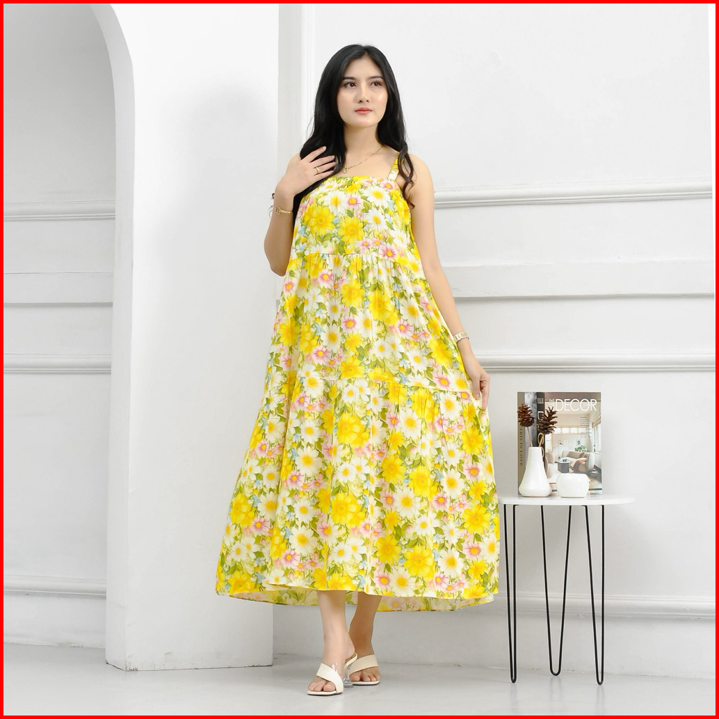 Lavanya Dress Tali Satu Tanpa Lengan Bumil Busui Dress Pantai Motif Bunga Rayon Viscose