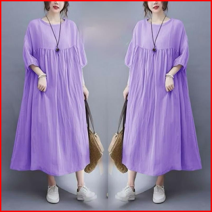 Acni Dress Jumbo Rayon Premium Lengan Karet 7 9 Dres Oversize Korea Style