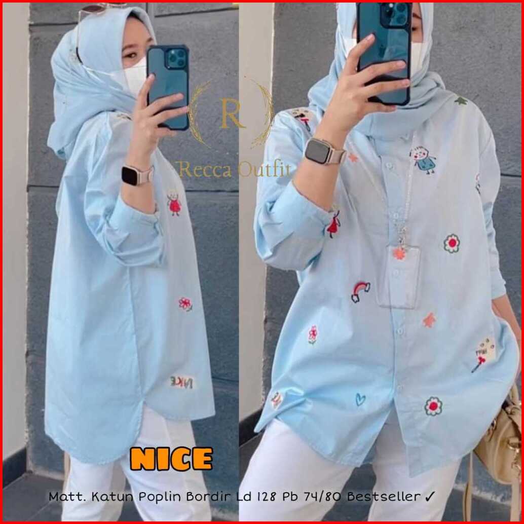 Kemeja Bordir Wanita Bahan Katun Lengan Panjang Kancing Aktif Busui Frendly