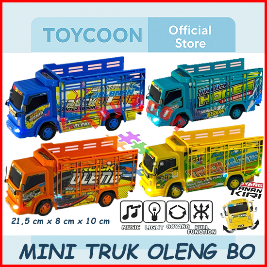 TRUK OLENG ORANGE, TRUK OLENG KUNING, TRUK OLENG TOSCA, TRUK OLENG BIRU, TRUK OLENG POLISI, PINK HITAM, KUNING HITAM, ORANGE, BIRU, RANDOM, TRUK OLENG PUTIH, TRUK KOTAK ORANGE, TRUK KOTAK KUNING, TRUK KOTAK TOSCA, TRUK SEGITIGA ORANGE, TRUK SEGITIGA KUNING, TRUK SEGITIGA TOSCA, TRUK PERTAMINA BIRU, TRUK PERTAMINA MERAH, TRUK HEWAN KUNING, TRUK HEWAN ORANGE, TRUK HEWAN BIRU