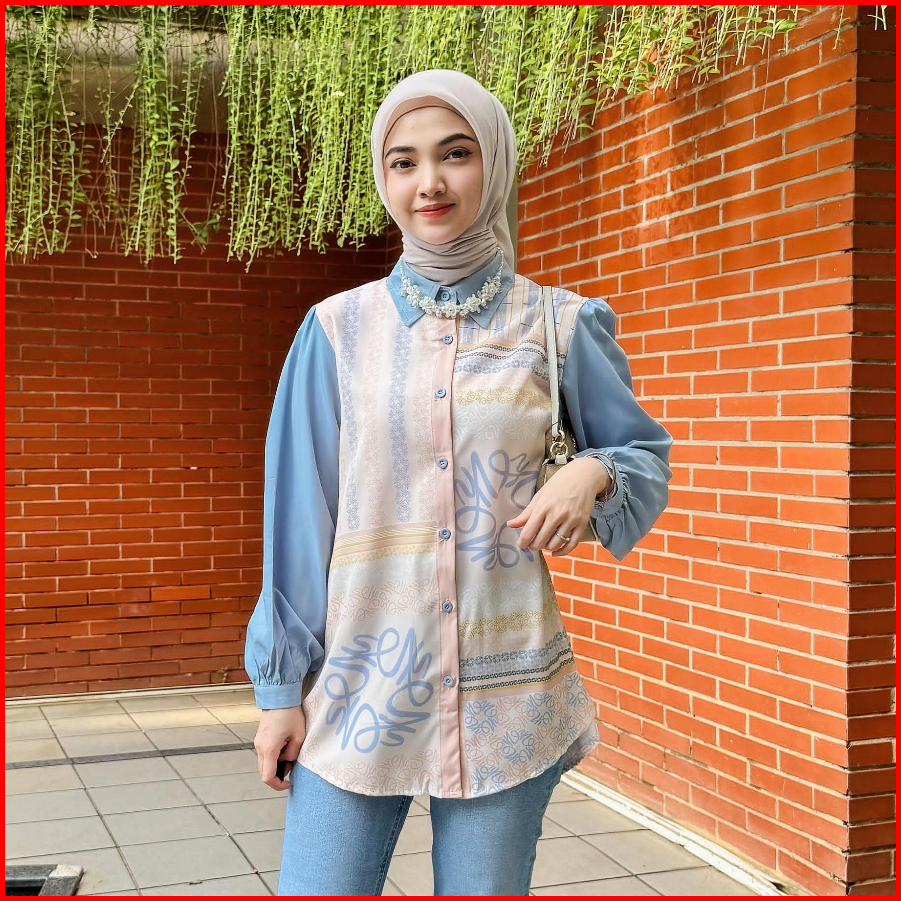 Fanmu Baju Blouse Wanita Blouse Motif Kekinian Kemeja Rayon Premium Wanita