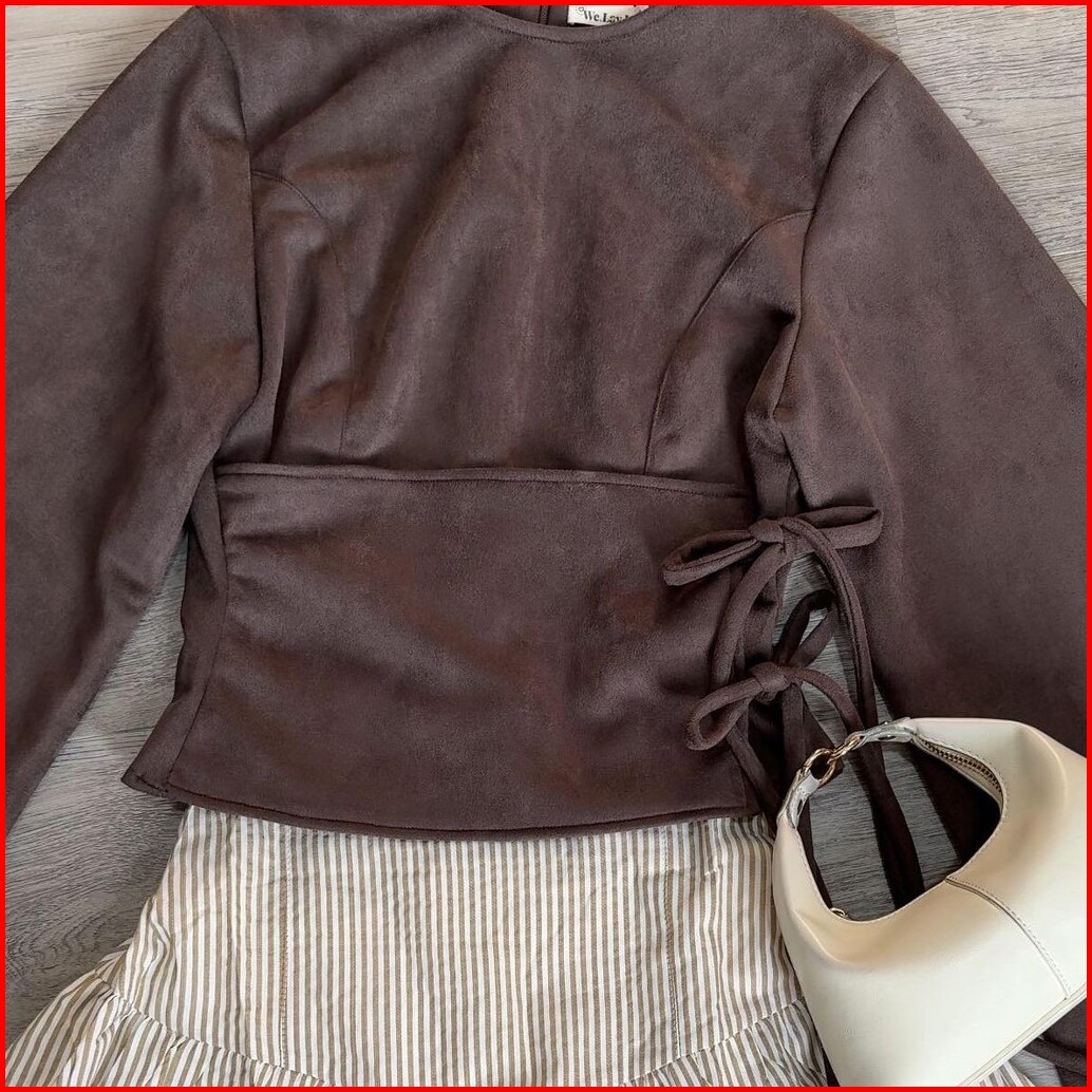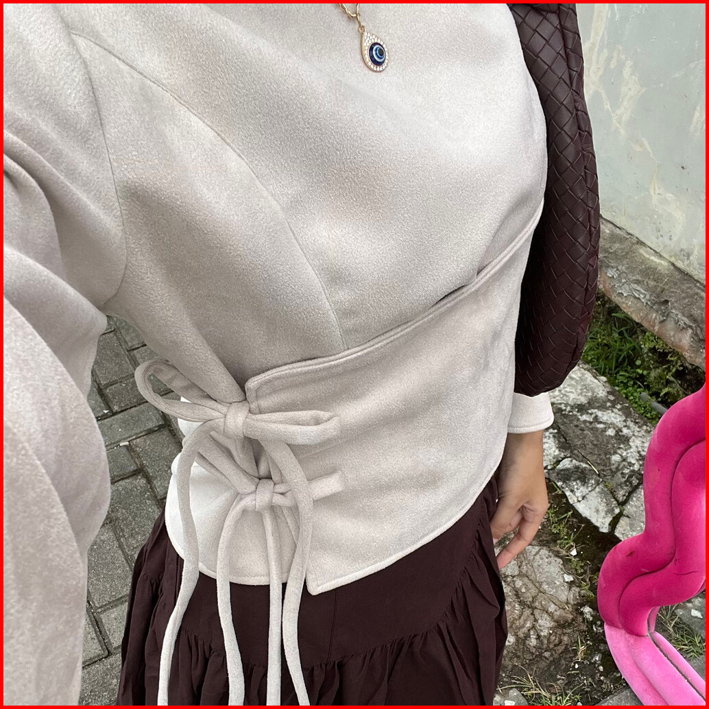 Zoey Fitted Kimono Suede Atasan Lucu Wanita
