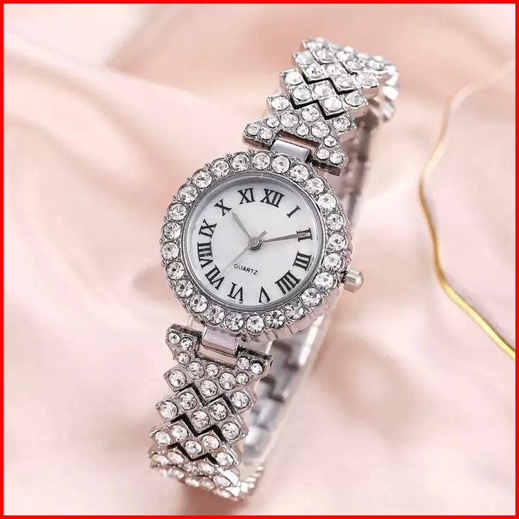 Jam Tangan Wanita Rantai Permata Berkilau Romawi Mewah Elegan Cantik