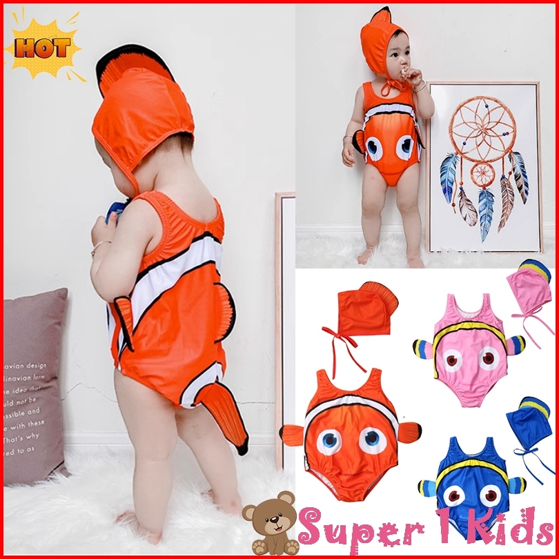 Super 1 Kidsbaju Renang Anak Laki-laki Dan Perempuan Model Baby Shark Dan Finding Nemo Jumpsuit Ju