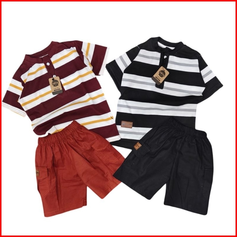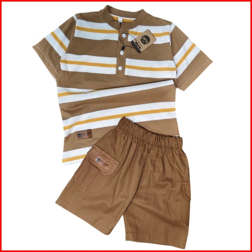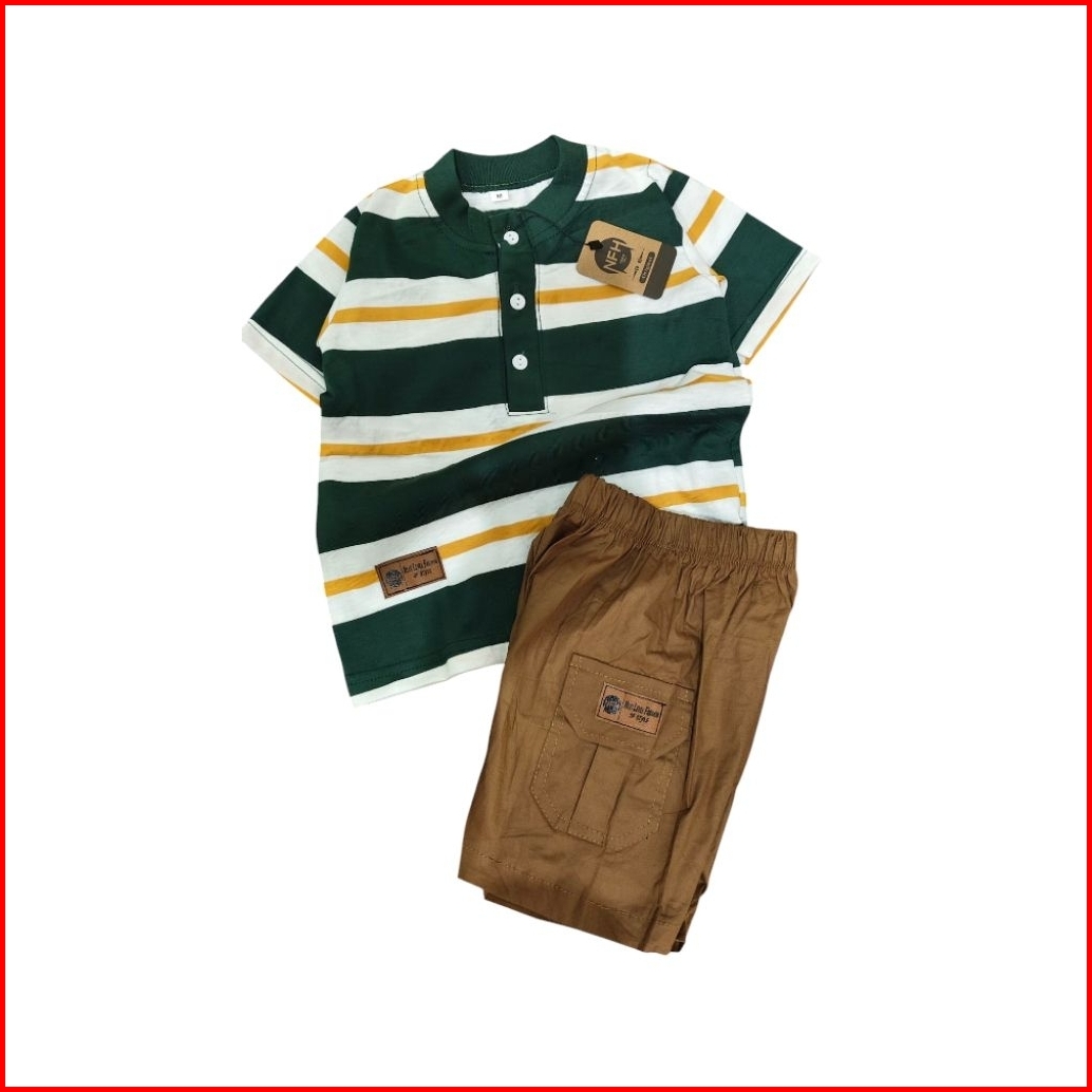 Setelan Kaos Anak Motif Salur Premium Bahan Cotton Combaded 24s 1-8 Tahun
