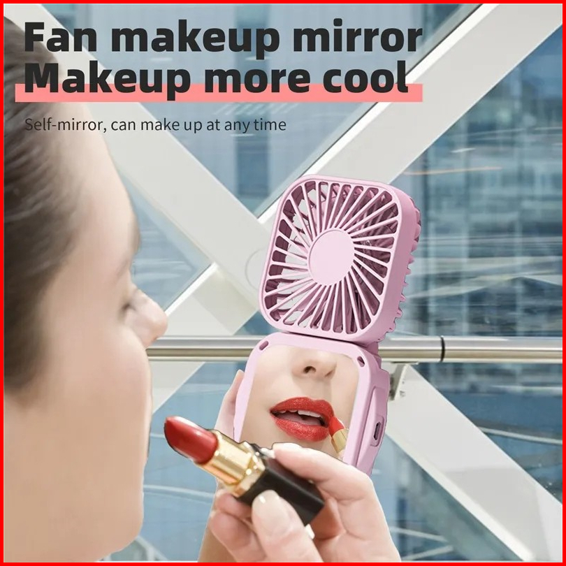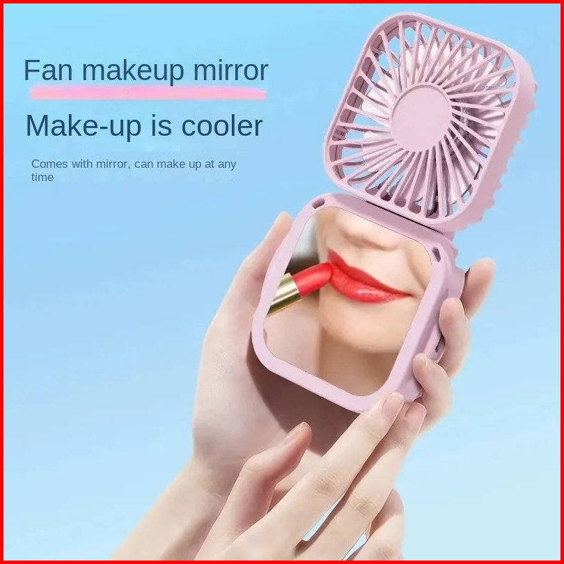 Kp034 Fan Makeup Mirror Kipas Mini Portable Plus Cermin Make Up
