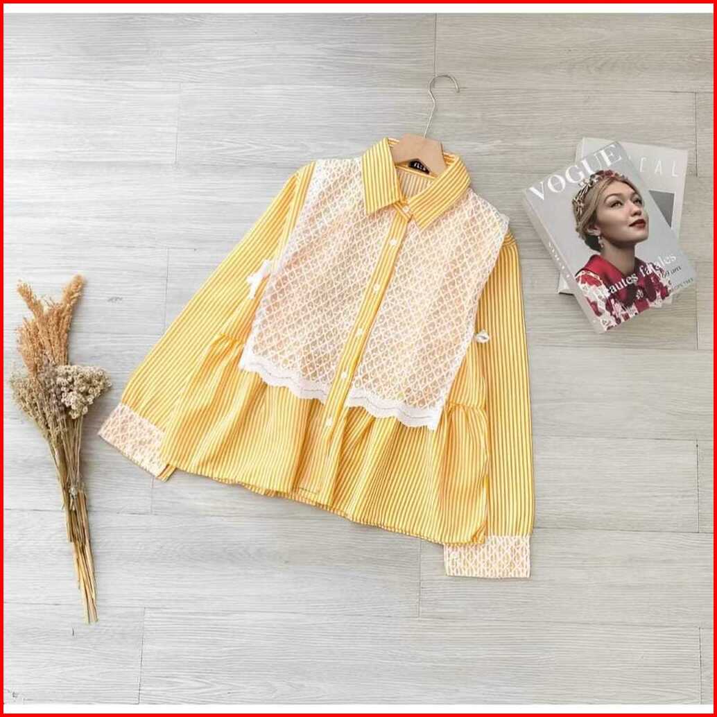 Terlaris Baju Atasan Kemeja Wanita Terbaru Kemeja Salur Mix Brukat Wanita