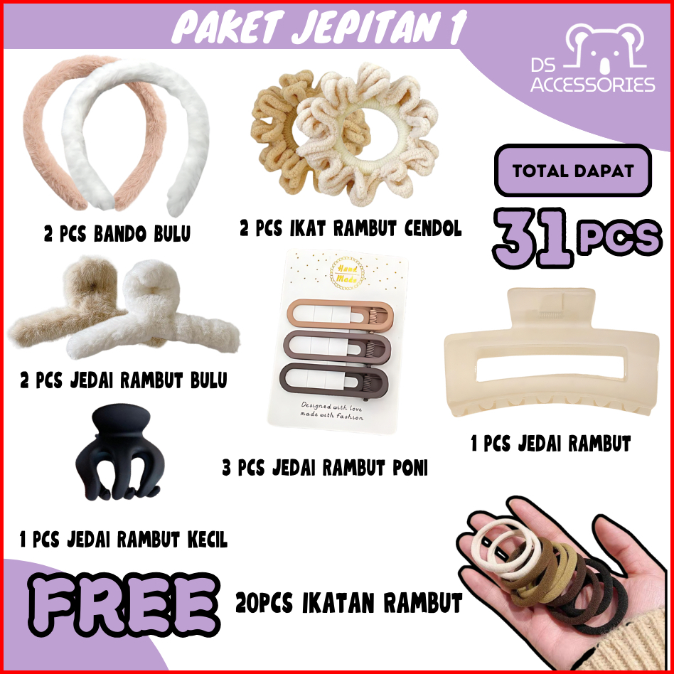 Paket 1 Jepit Rambut Korea Bando Bandana Wanita Jedai Free Ikat Rambut 20pcs Paket 31pcs