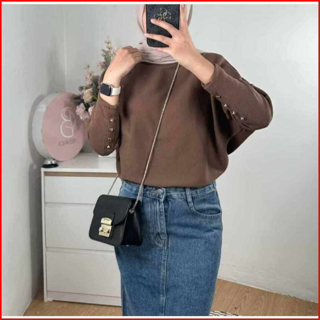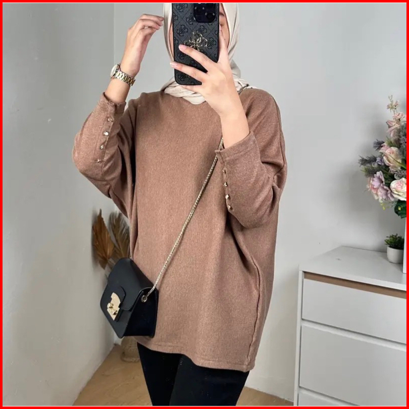 Laura Top Knitt Batwing - Atasan Wanita Knitwear Premium Batwing Knit - Oversize Blouse Batwing Top Inara Knit Kancing P