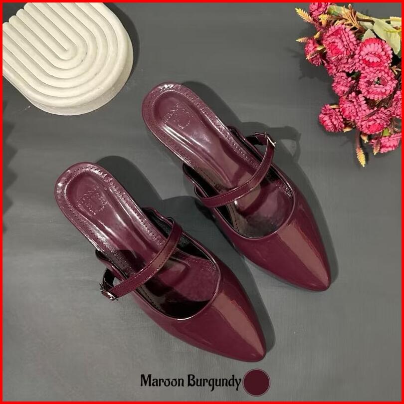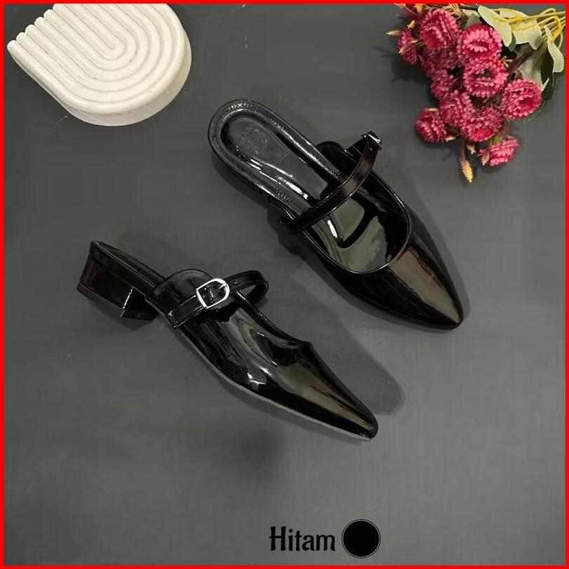 Sandal Mules Wanita Meryjane Slip On Sandals Wanita Glossy Elegant Gs28