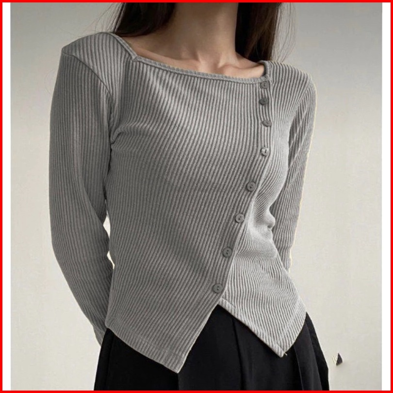 March Blouse Korea - Atasan Wanita Kancing - Cricia Blouse Knit Rib Korean Style