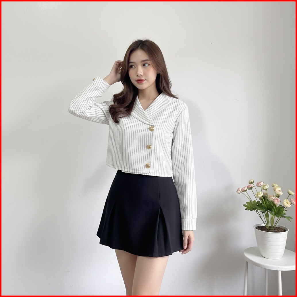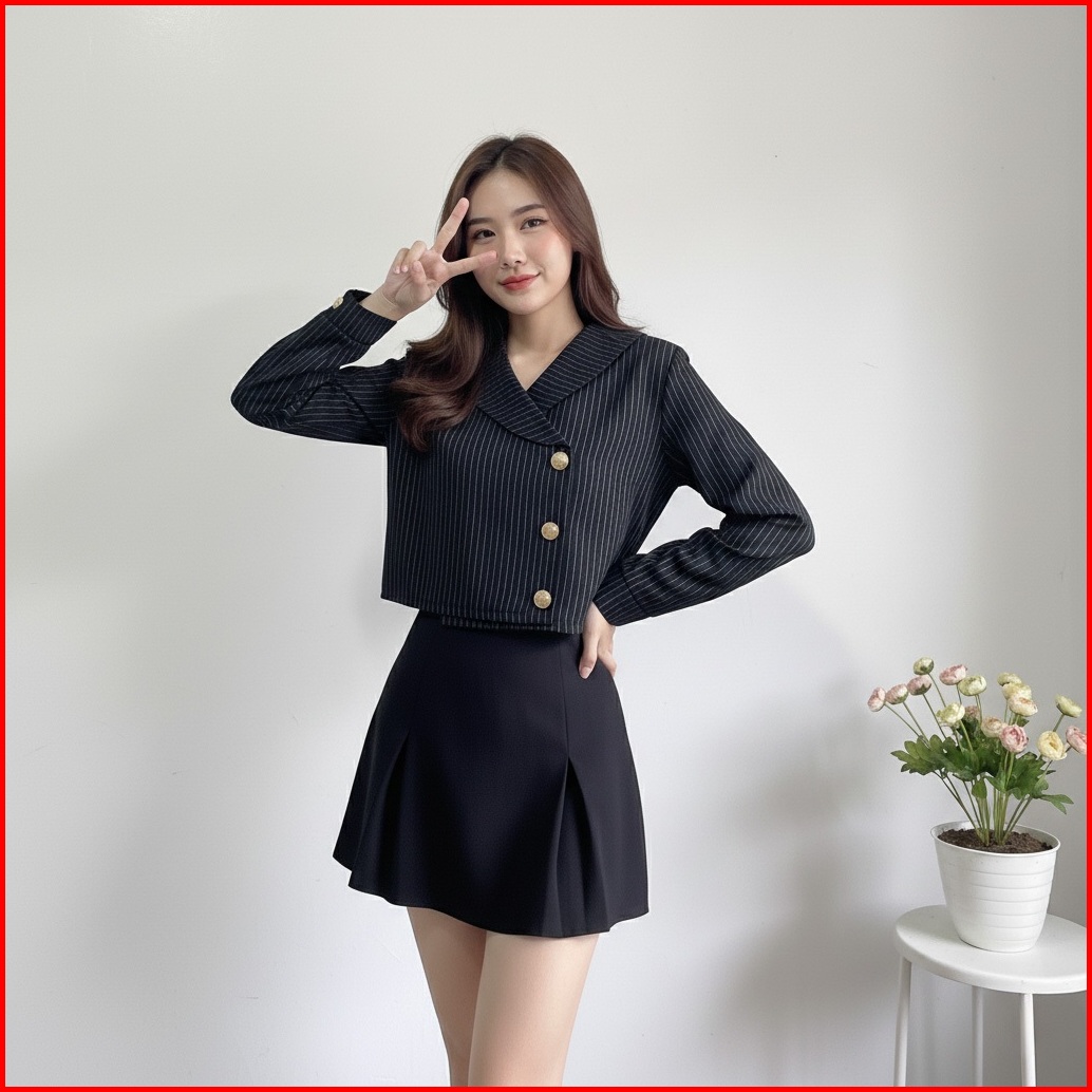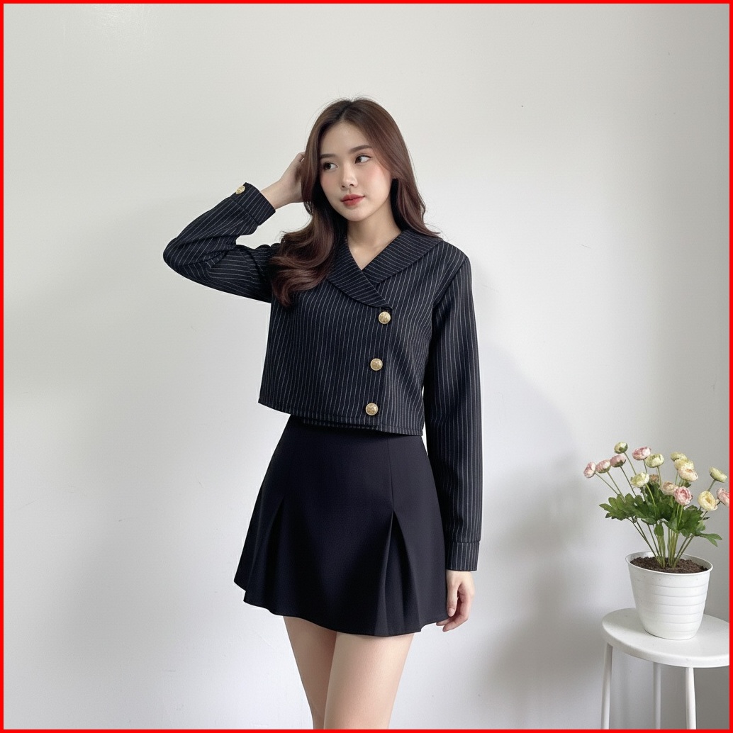 Taju Kemeja Semi Blazer Crop Tweed Casual Vintage Size M L Xl