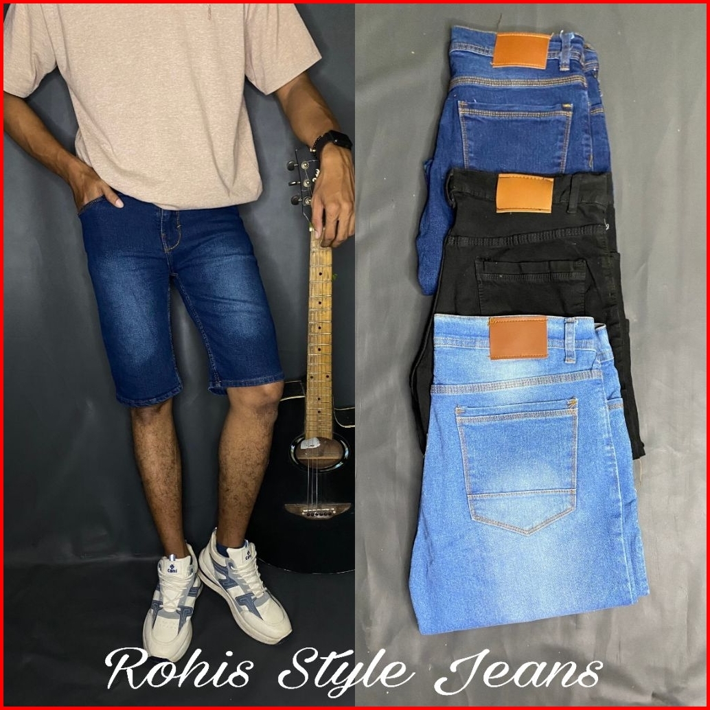 Celana Jeans Pendek Pria Jumbo Size 27-38 Bahan Denim Soft Jeans Distro Style Pria Kekinian