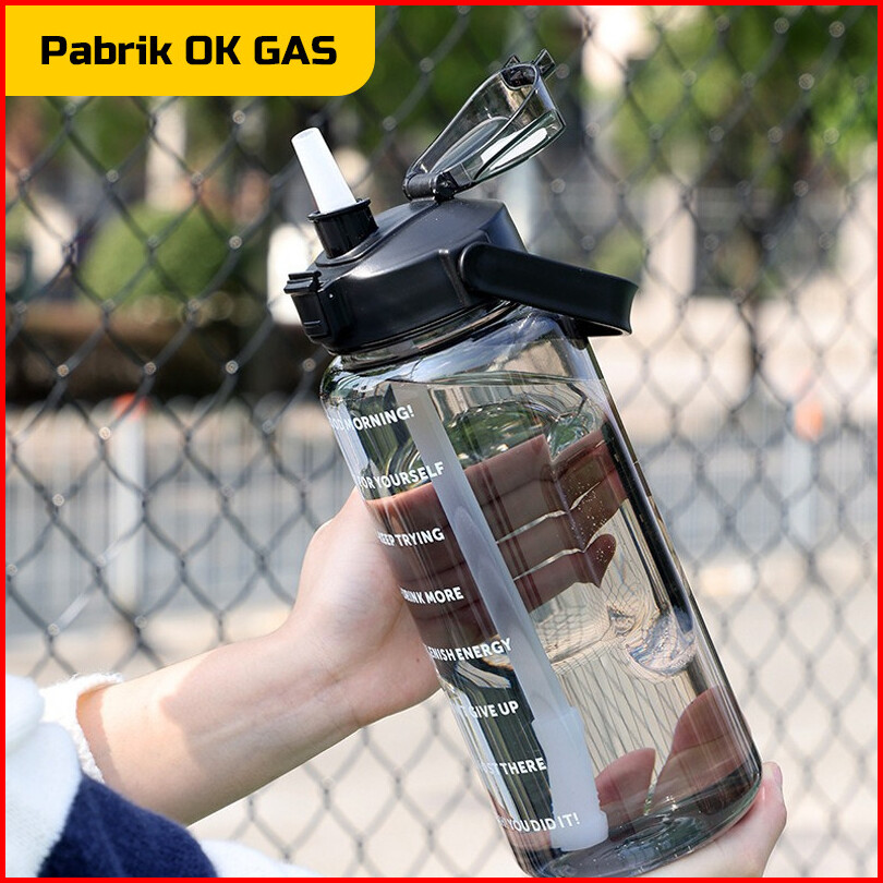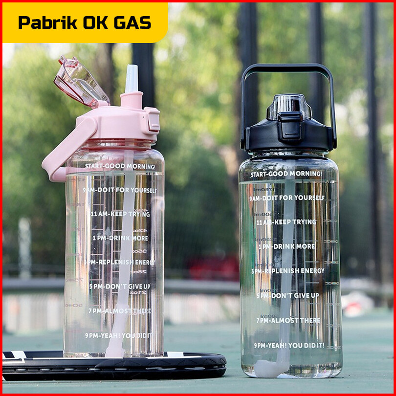 Pog - Botol Minum Jumbo 2 Liter Premium Anti Pecah Botol Air Anak Sekolah Botol Minum Motivasi Dengan Sedotan