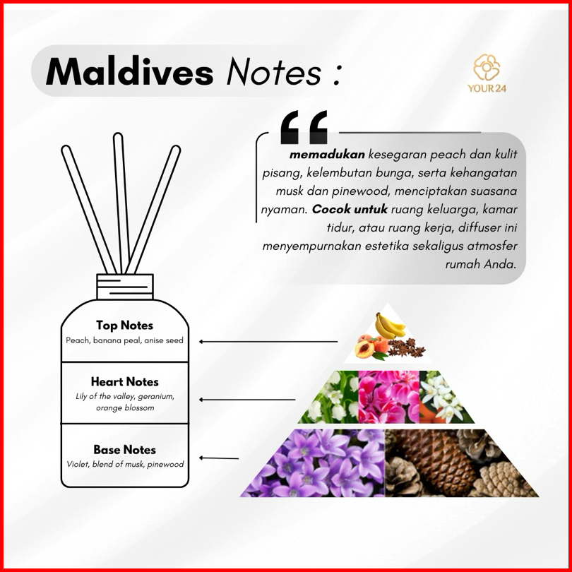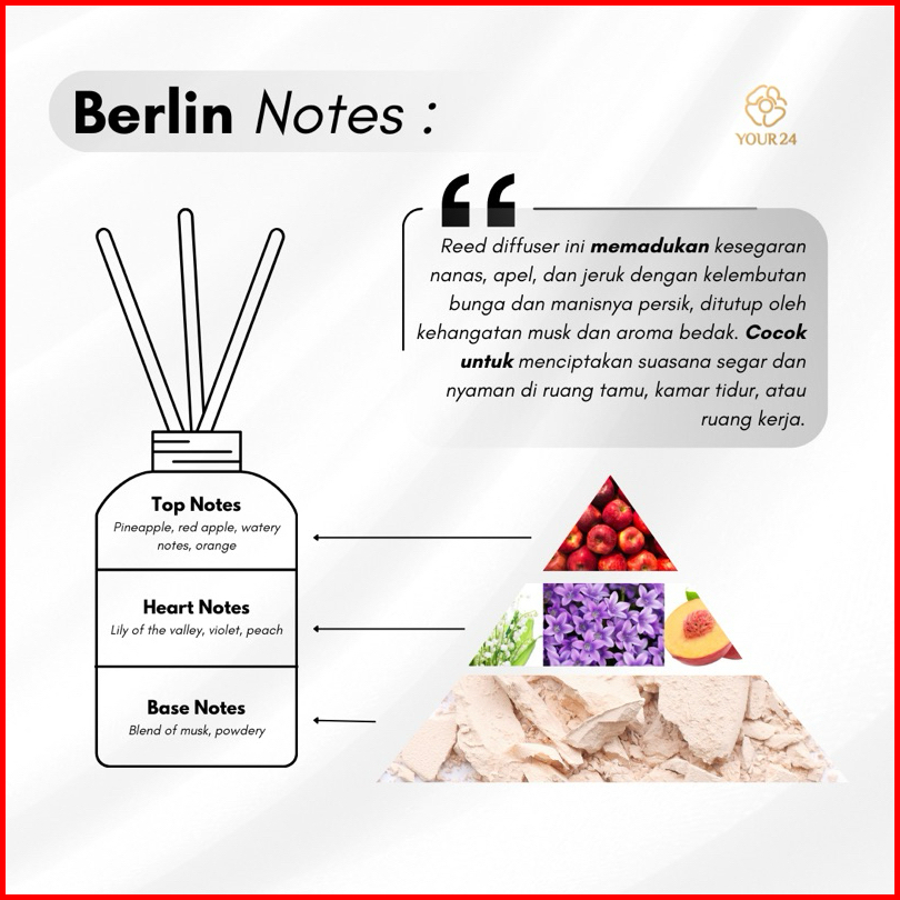 Your24 Premium Reed Diffuser 50ml - Pengharum Ruangan Aromaterapi With Essential Oil Free 4 Stick
