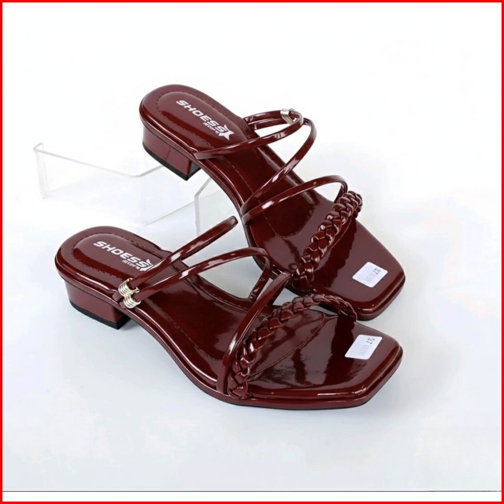 Sandal Wanita Hak Tahu Shally Heels Sandal Tali Kepang Heels 3 Cm Sandal Jeslyn