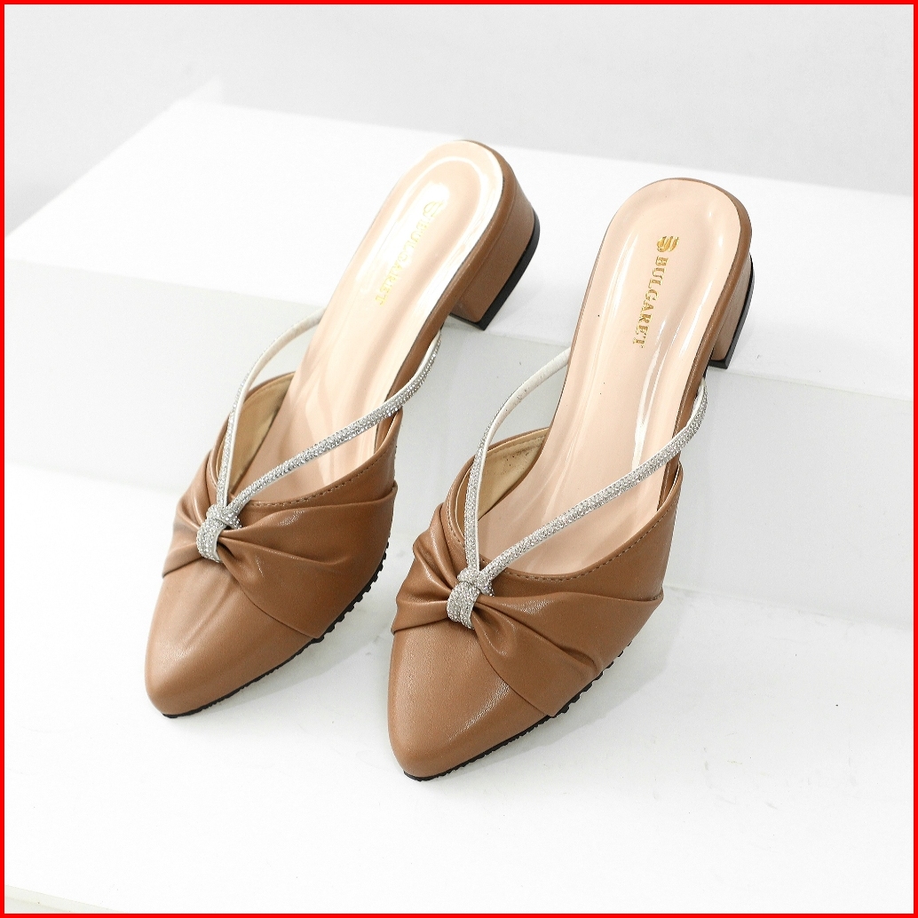 Sandal Wanita Heels Mules Hak 3cm Elegan Kekinian Dn 11