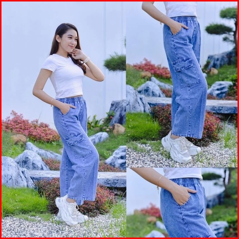 Celana Kulot Kargo Wanita Panjang Full Karet Terbaru Celana Kulot Jeans Snow Wanita Terbaru
