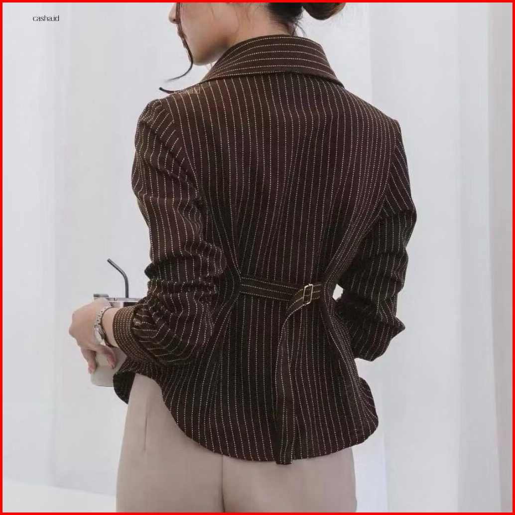 Luna Stripe Kemeja Fitted Premium - Kemeja Wanita Salur Garis Casual - Kemeja Wanita Lengan Panjang Terbaru - Atasan Bas