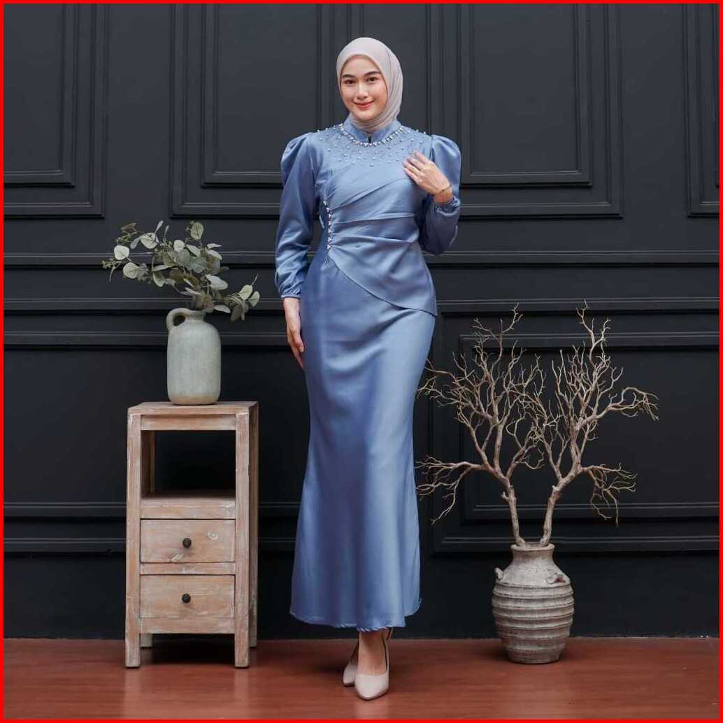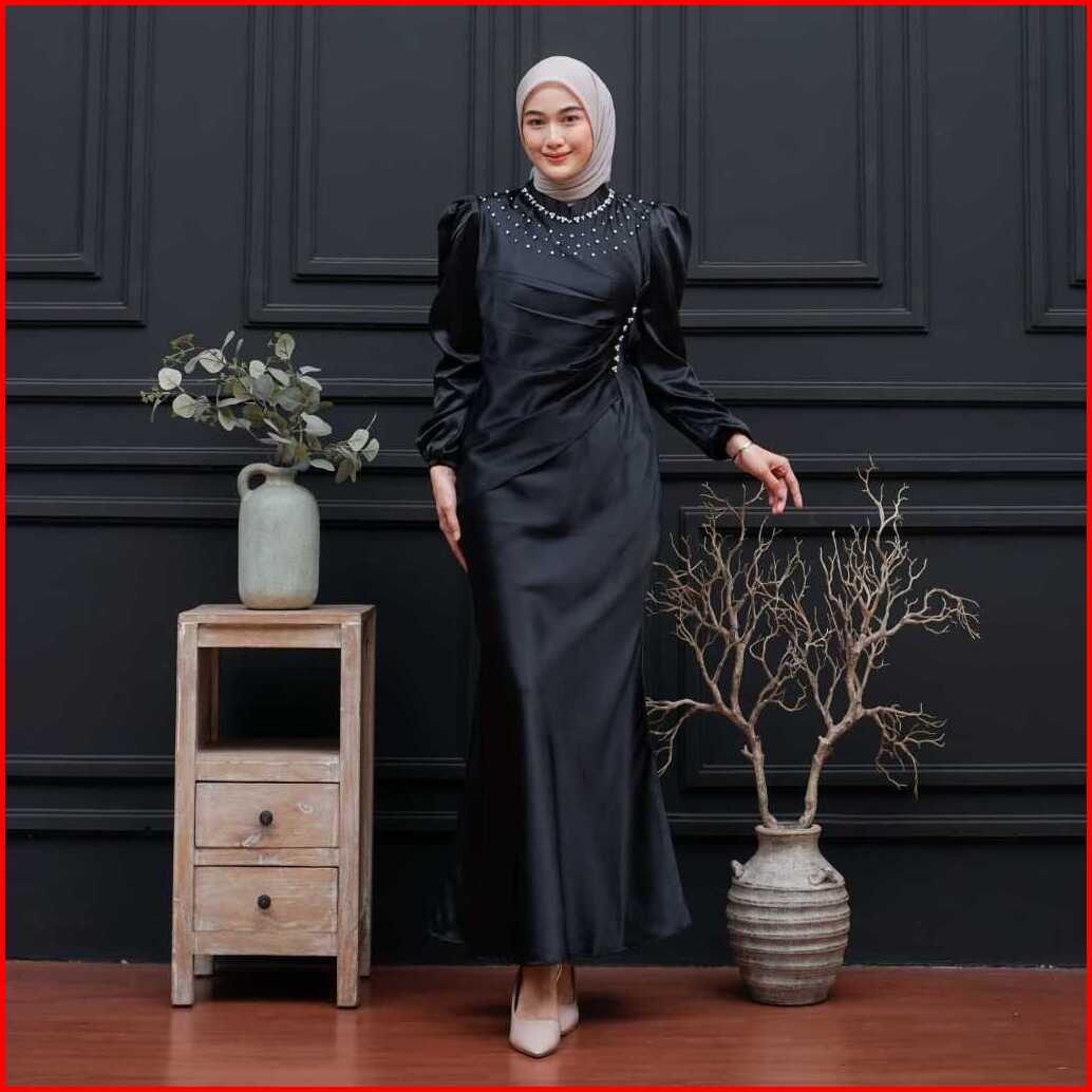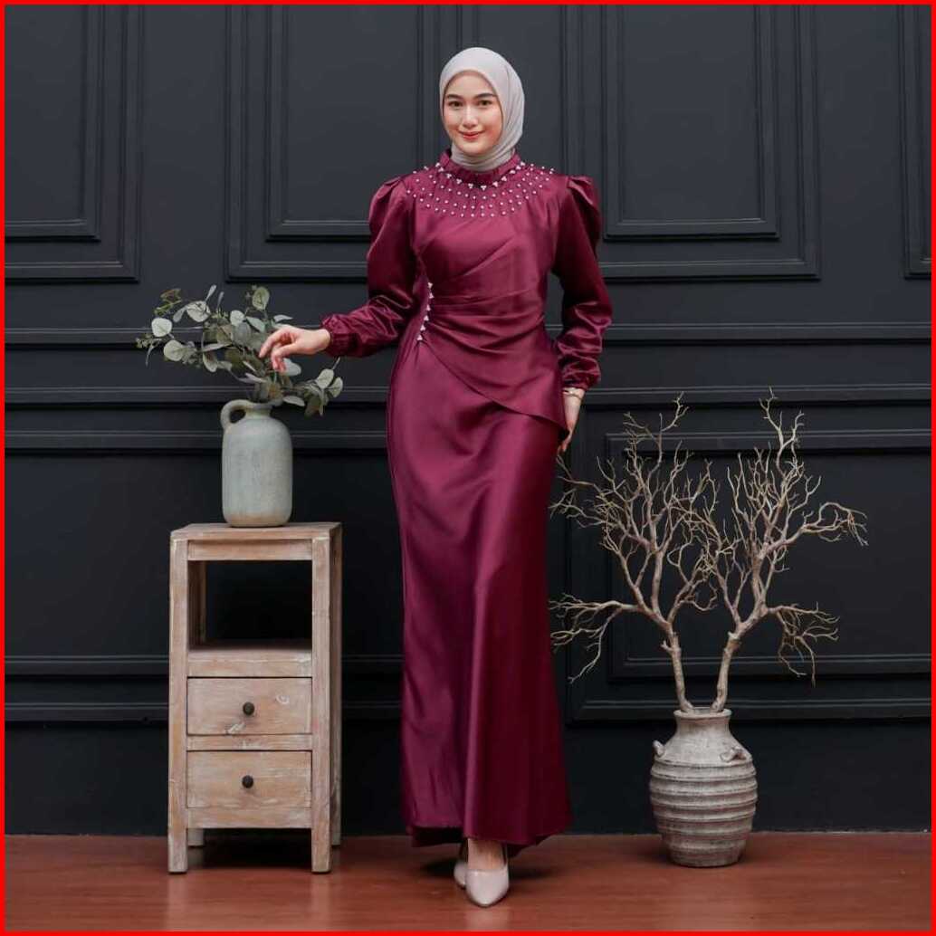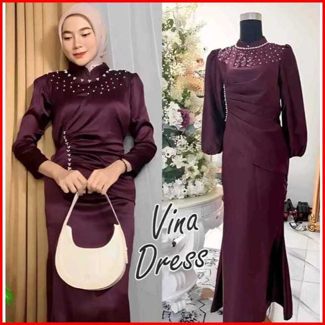 Vina Dress Satin Silk Premium Wanita Kondangan Muslim Body Fit Viral Mermaid Dress Terbaru