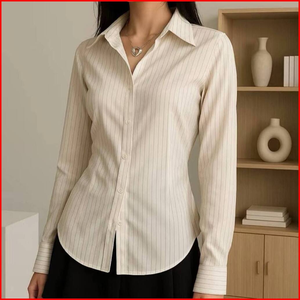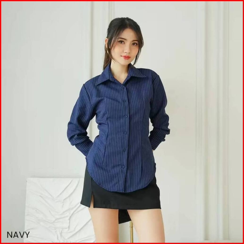 Skylea Luna Stripe Fitted Shirt - Kemeja Wanita - Atasan Wanita Stripe Salur - Kemeja Basic Lengan Panjang - Kemeja Kant