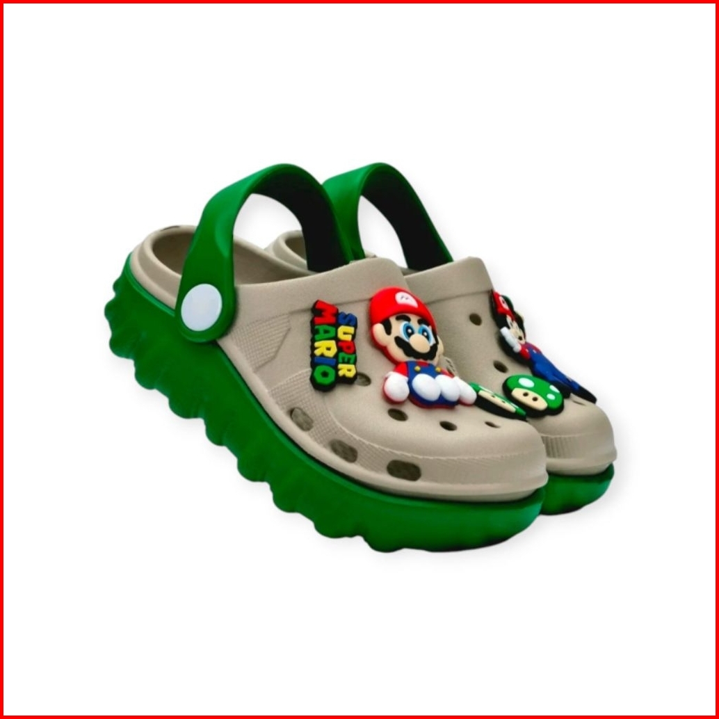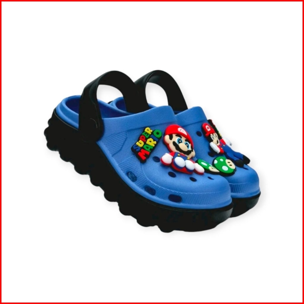 Sandal Baim Anak Laki-laki Sendal Baim Anak Cowok Tali Belakang Jibitz Mario Slip On Double Sol Kekinian H26032