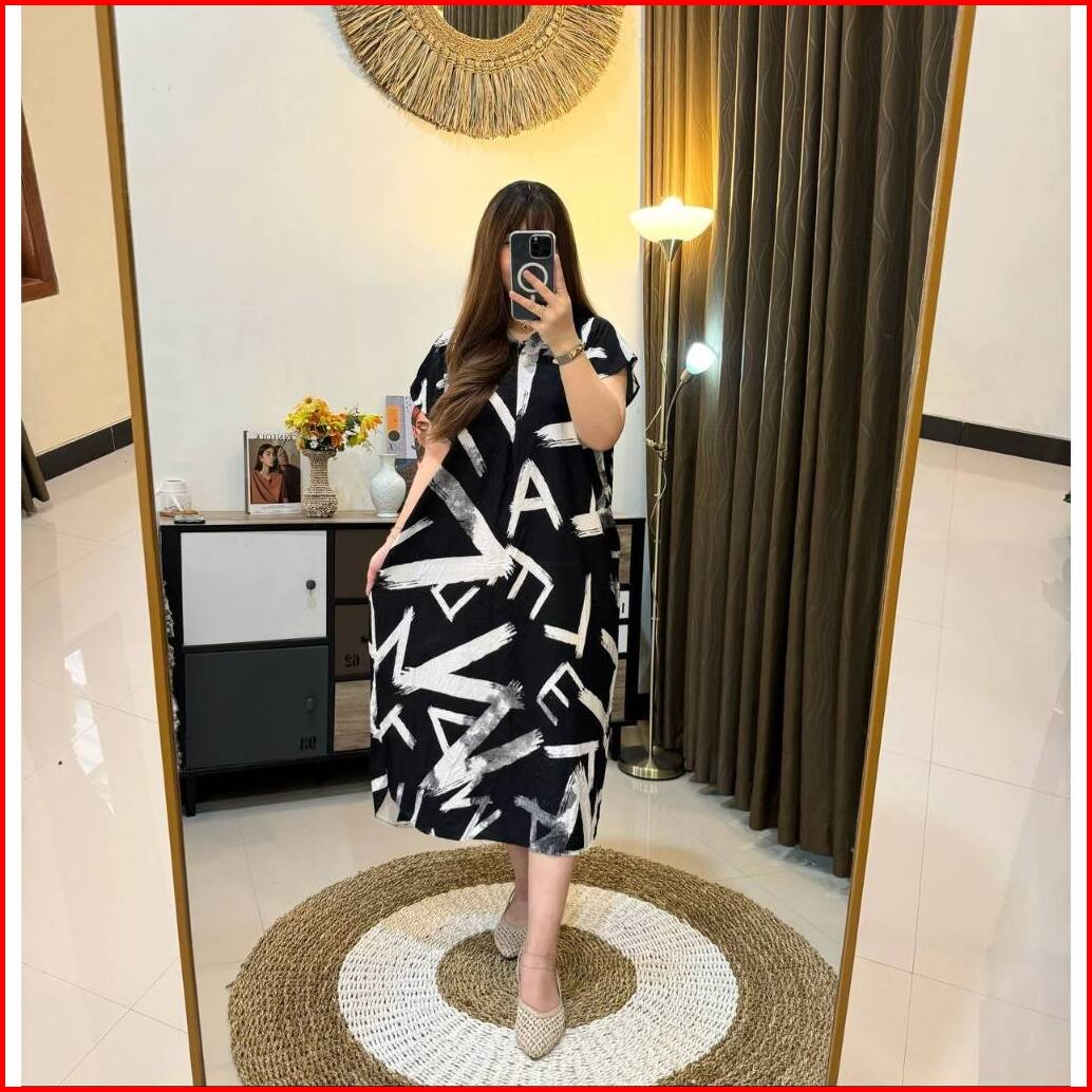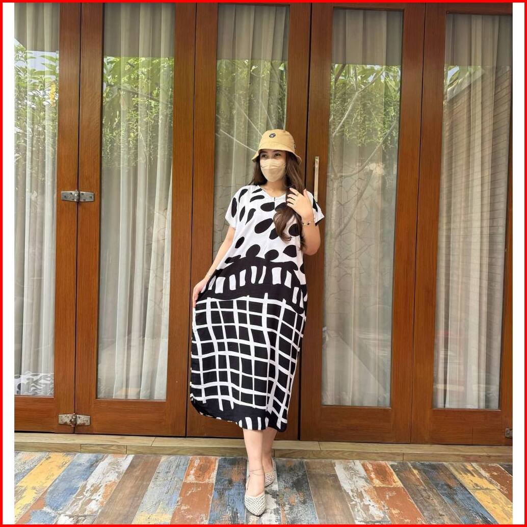 Daster Lowo Rayon Jumbo Busui Wanita Monochrome