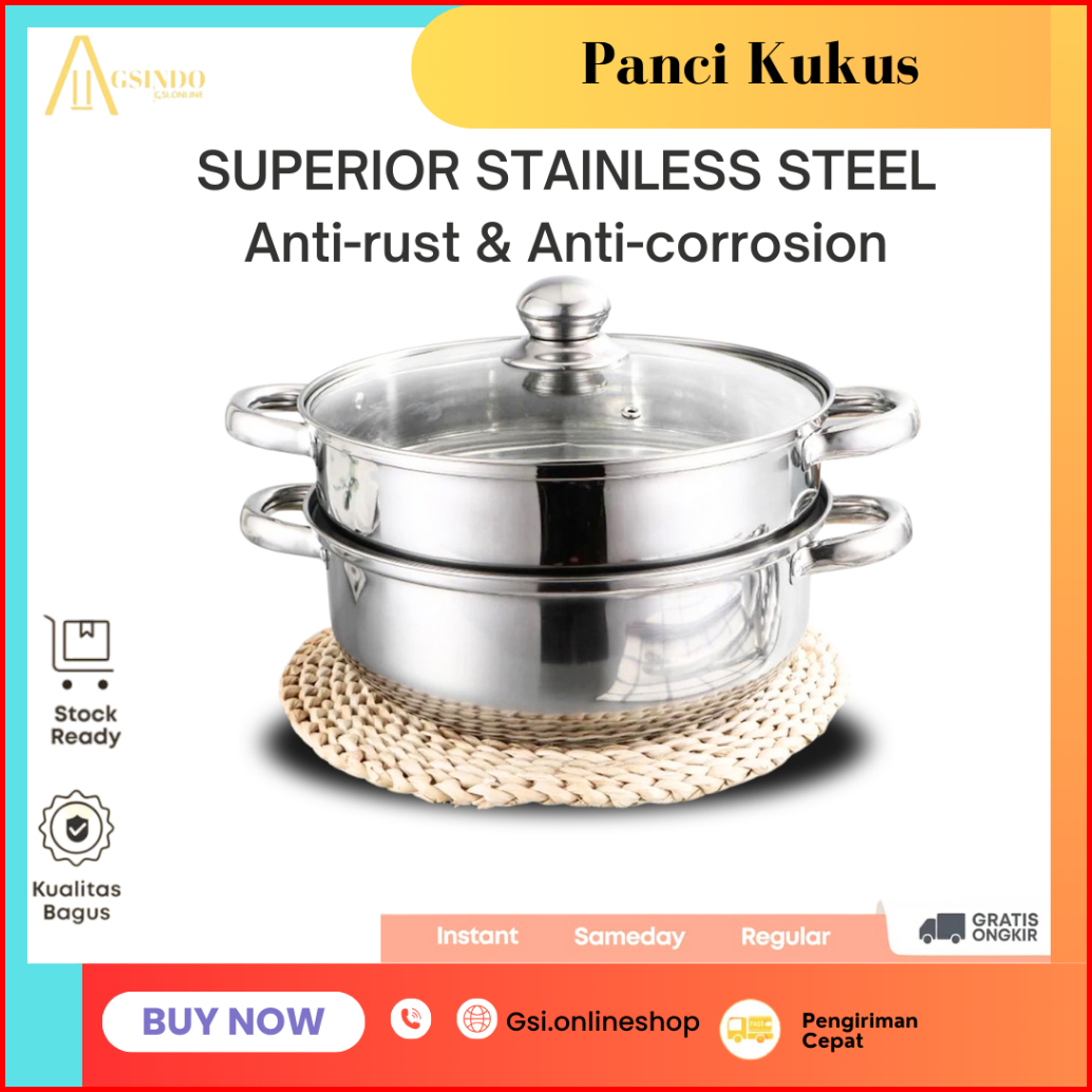 Panci Dandang Steamer Kukus Stainless Steel 28cm - Anti Karat - Bahan Kuat - Kualitas No.1