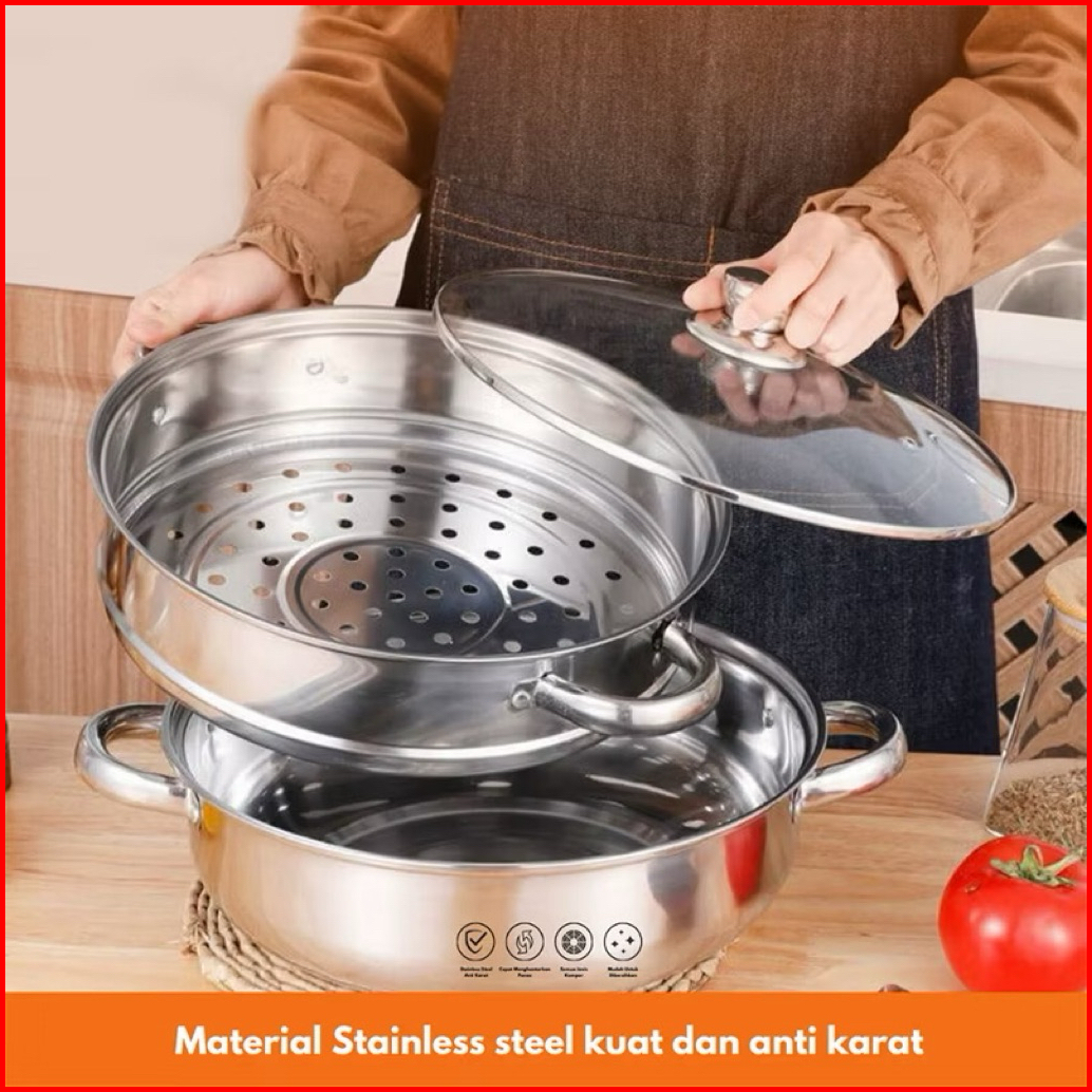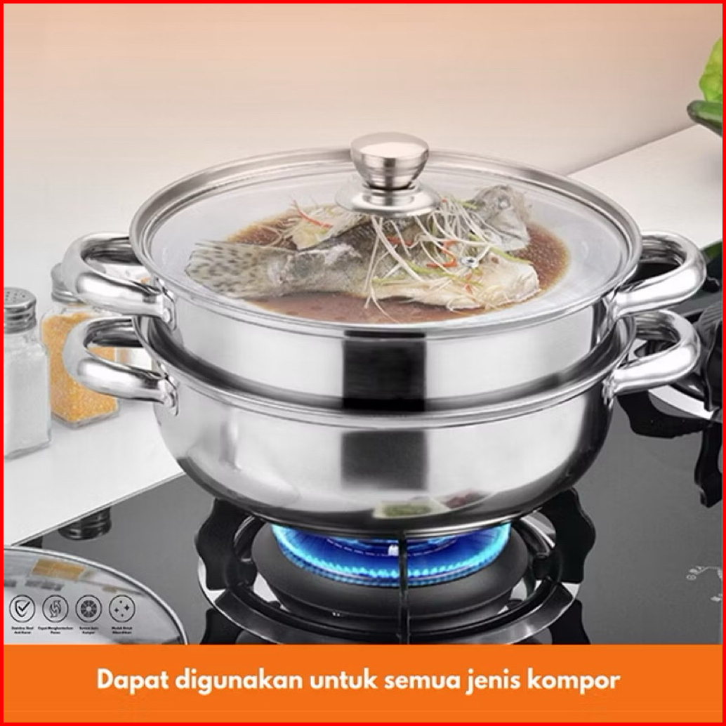 Panci Kukus Stainless 2 Susun Anti Lengket 28cm