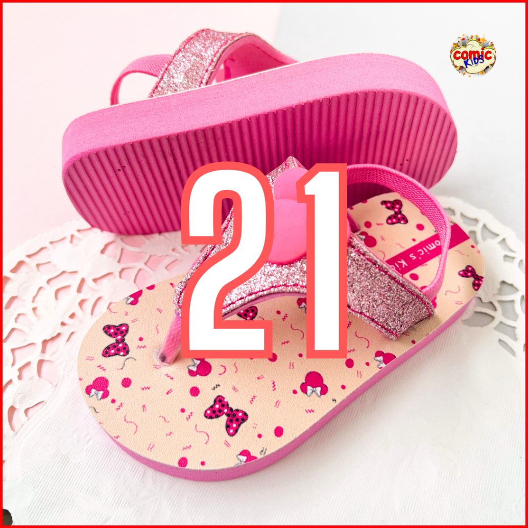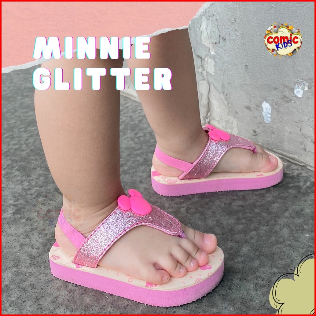 Comickids Sandal Anak Perempuan Sendal Jepit Cewek 1 Tahun Flip Flop Pink Slippers Minnie Glitter