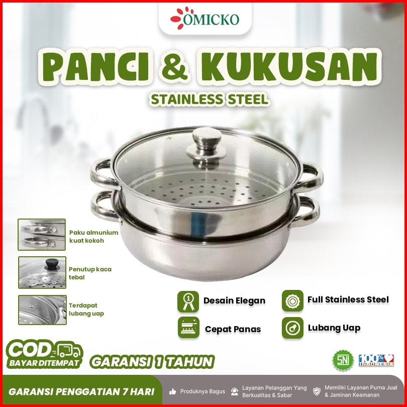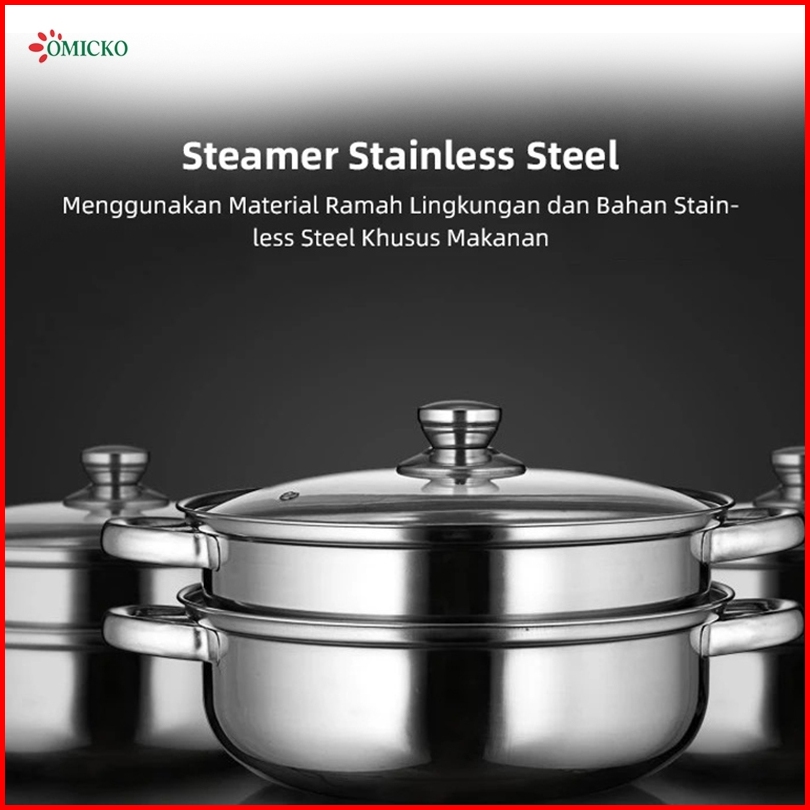 Omicko Panci Kukusan Diameter 28cm Panci Kukus Stainless Serbaguna Steamer Food Grade Kukusan 2 Tingkat Untuk Dimsum Mak
