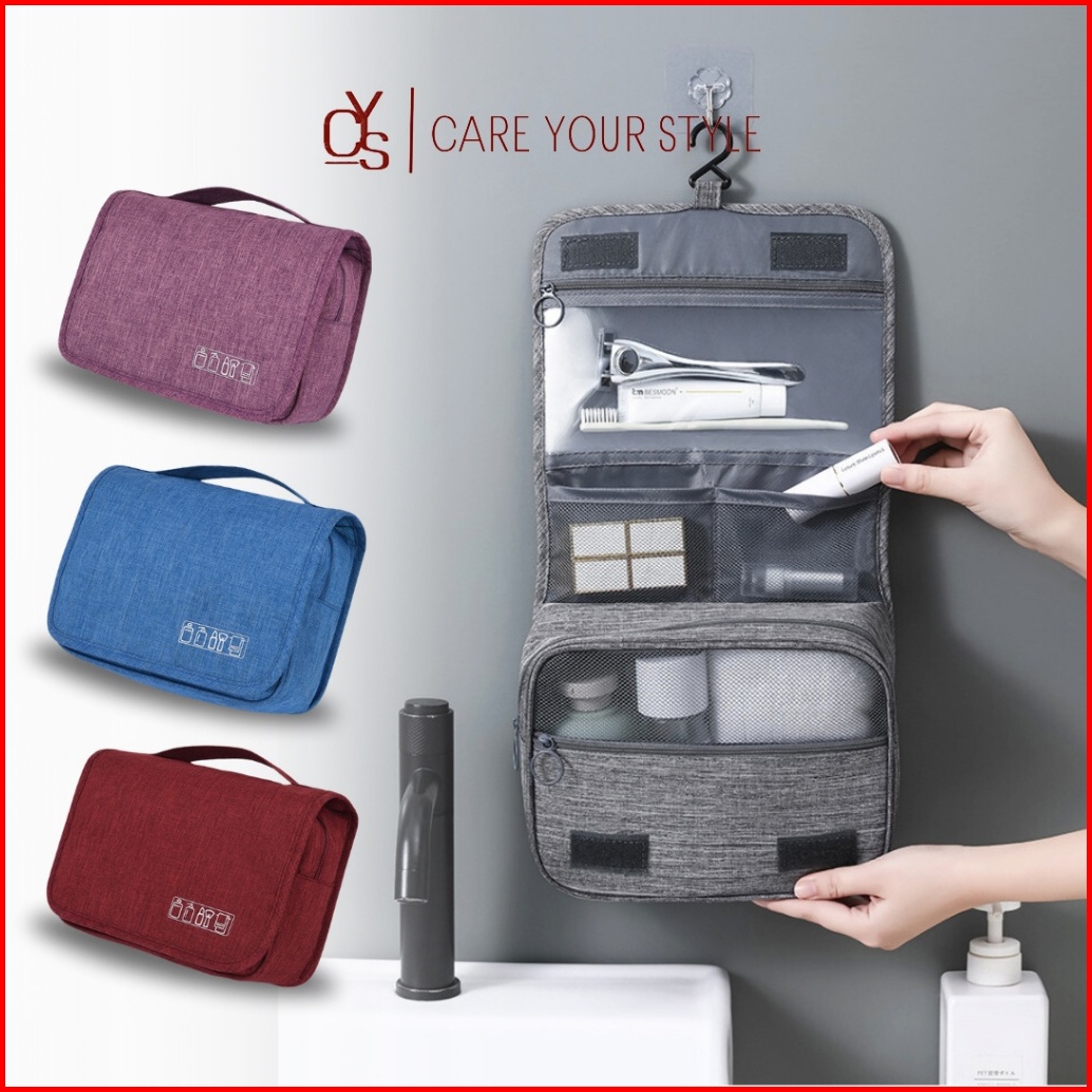 Cys Travel Bag Pouch Organizer Penyimpanan Make Up Alat Mandi Gantung Warna Polos Kain Oxford Tt-05