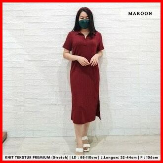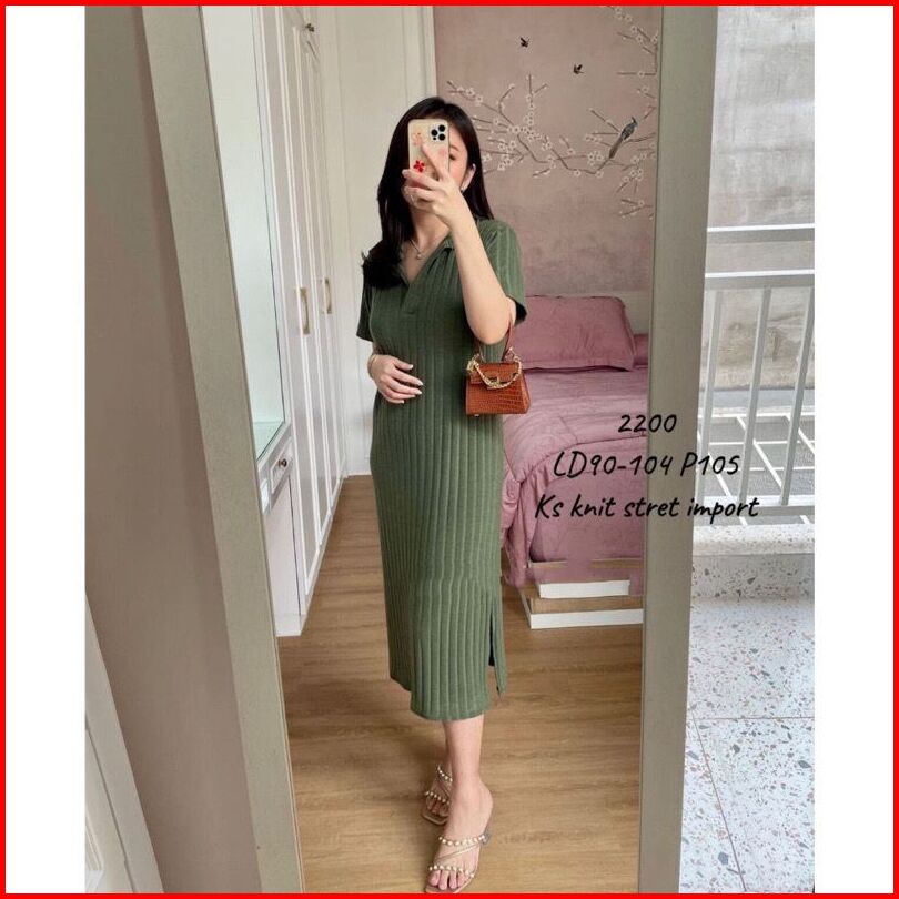 Matilda Knit Slit Dress Cny Polos Rib Rajut Premium Dress Kerah Collar