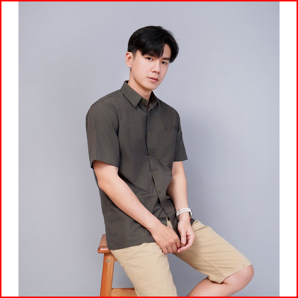 Kemeja Pria Polos Bahan Katun Lengan Pendek Premium