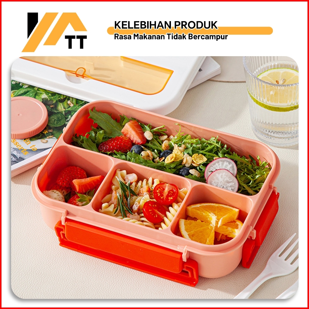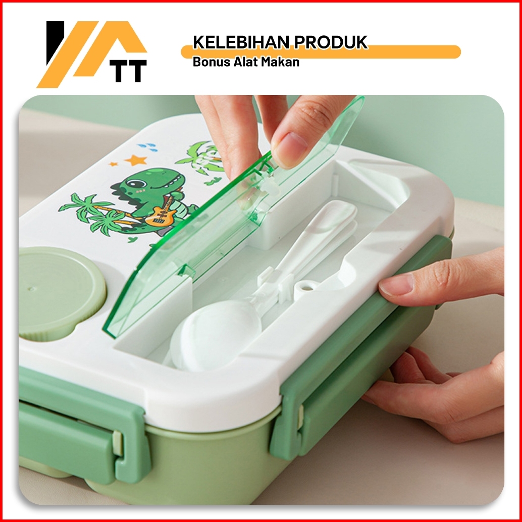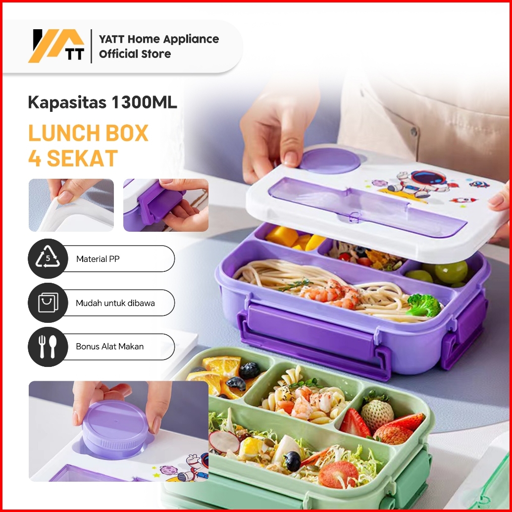 Yatt Lunch Box Anak Sekolah 4 Sekat 1300ml Bpa Free Kotak Makan Karakter Anti Bocor Dan Kotak Saus