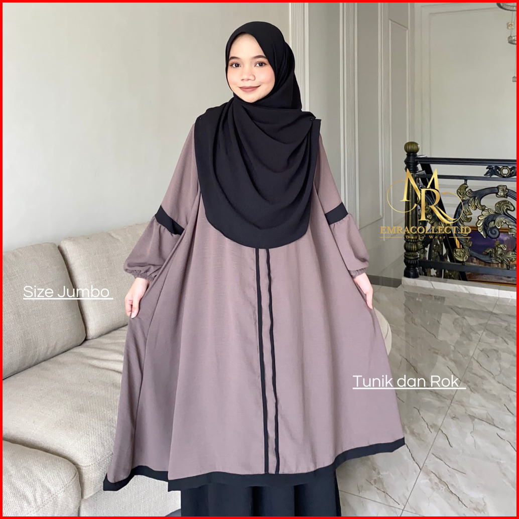 Oneset Nayyara Setelan Rok Tunik Syari Jumbo Ld 120 Set Tunik Malaya Terbaru - Emracollect.id