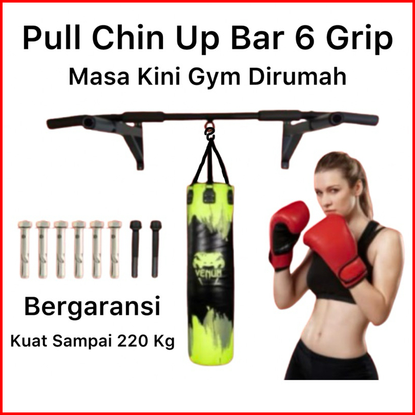 Pull Chin Up Bar 6 Grip Fitness Pasang Dinding Bisa Gantungan Samsak Tinju