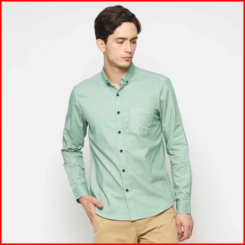 Promo Putih Kancing Putih Kemeja Pria Lengan Panjang Sage Green Soft Green Hitam Abu-abu Maroon Putih Navy Kemeja Polos