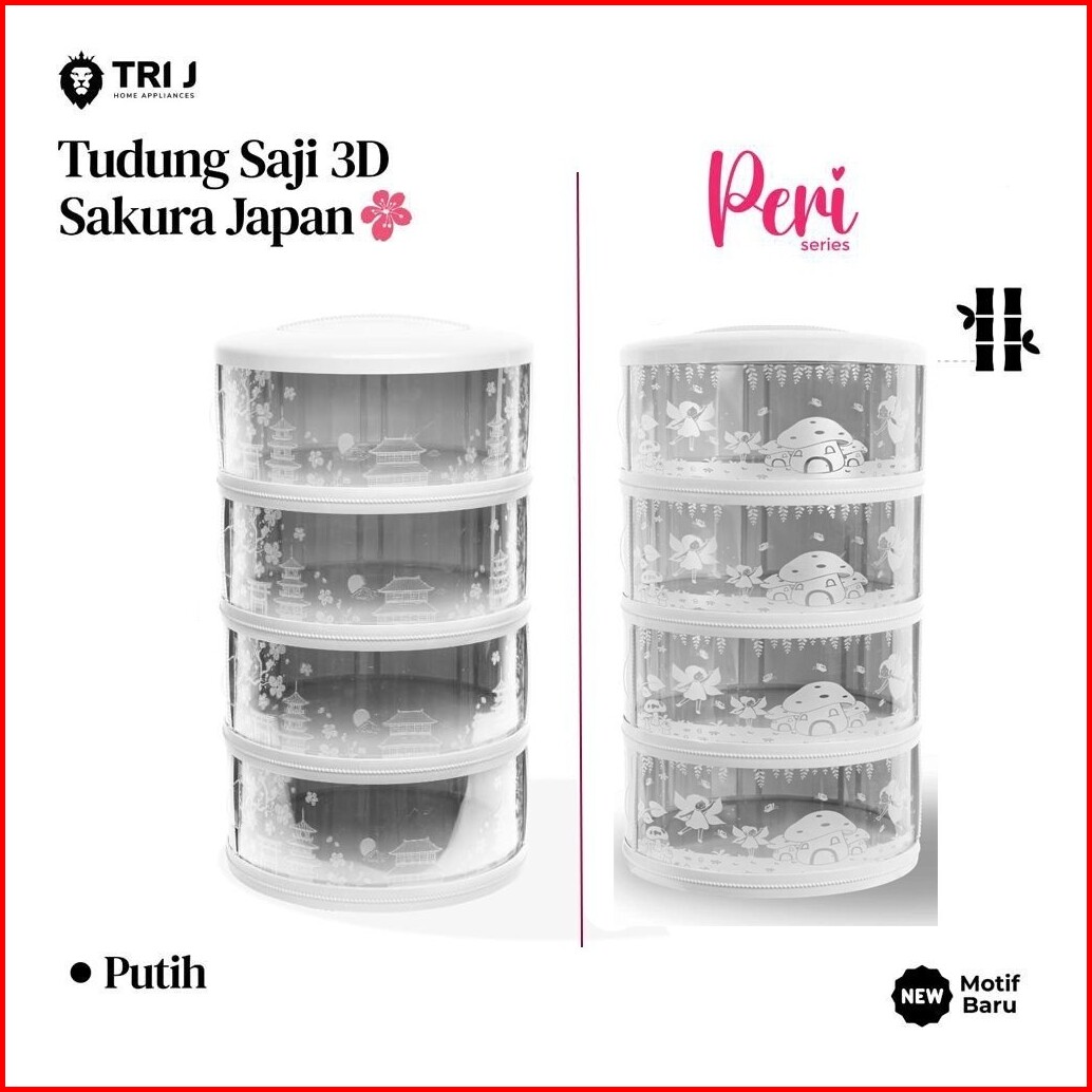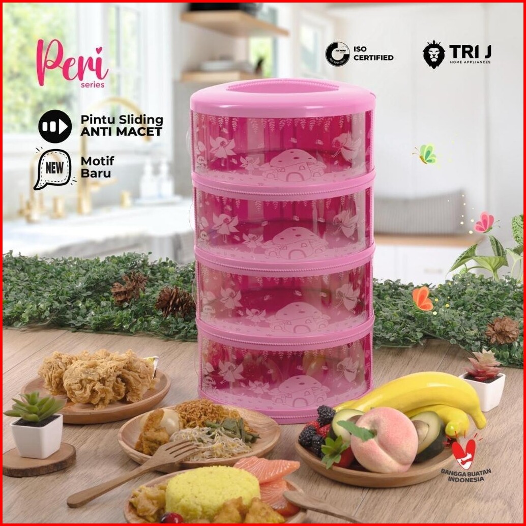 Tri J Tudung Saji 4 Susun Rak Tempat Wadah Penyimpanan Makanan Snack 4 Tingkat Motif