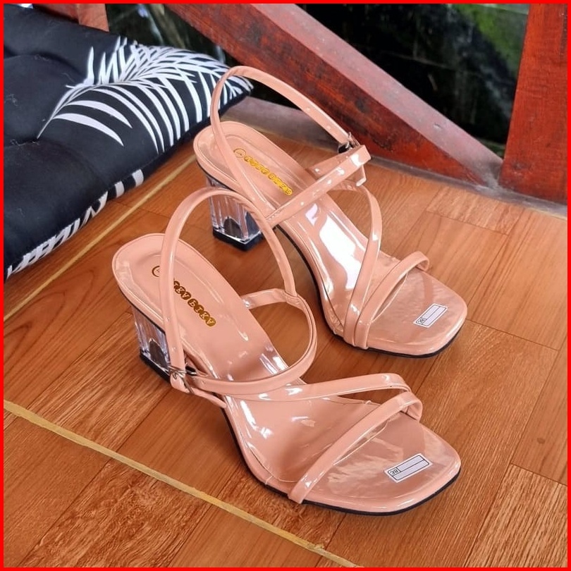 Juragan Online - Gendhis High Heels Wanita Sepatu Kaca Bening Transparan Bahan Sintetis Glossy