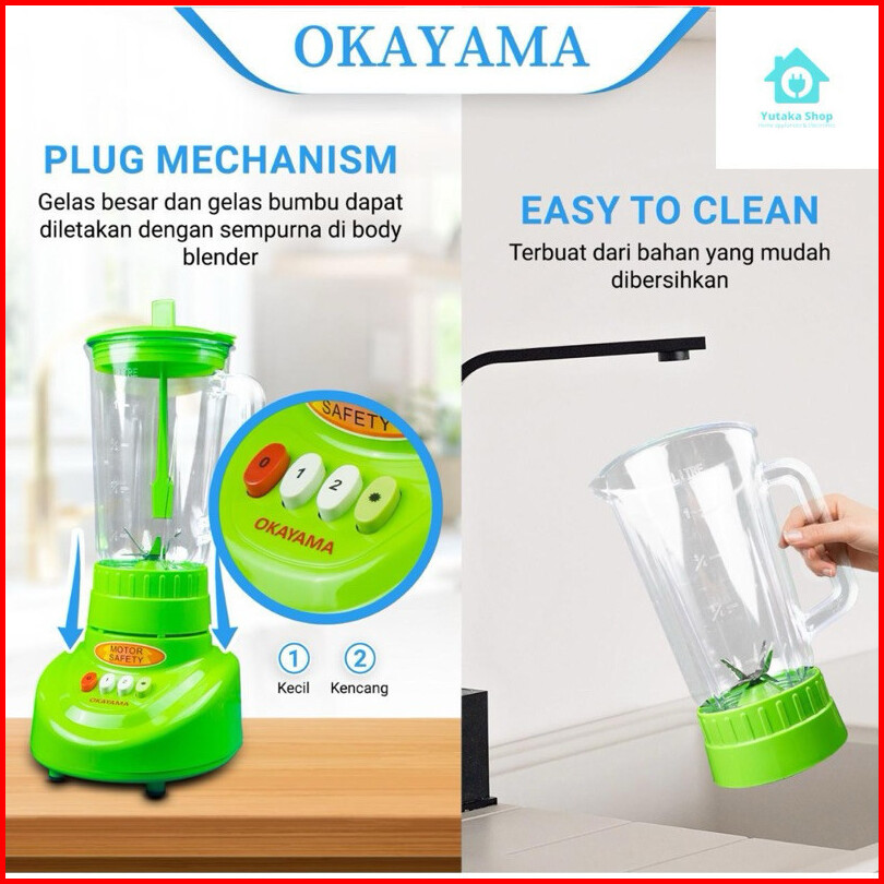 Okayama 1 Liter Blender 3in1 Plastik Hijau Sni Ok-355
