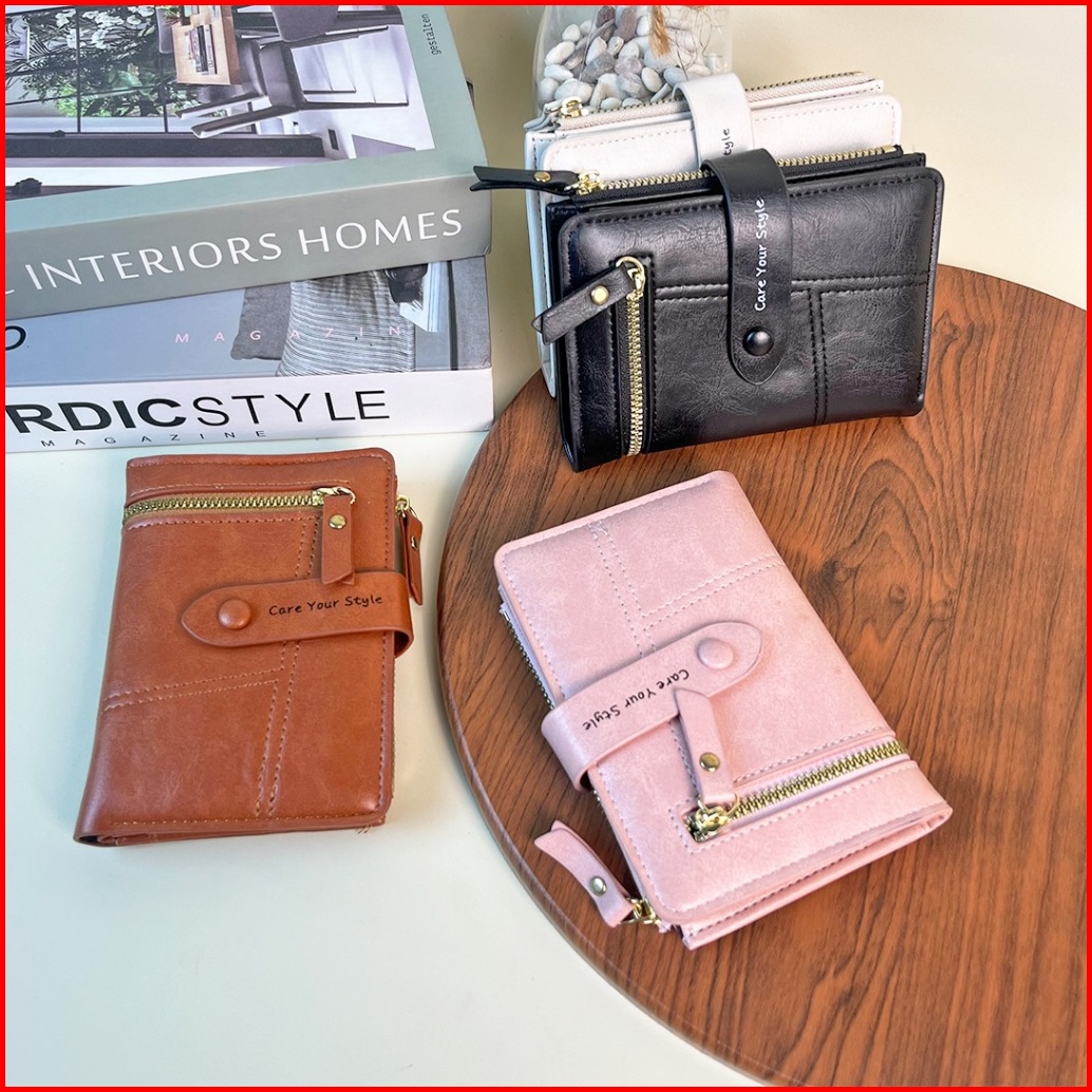 Dompet Lipat Mini Wanita Korea Kecil Kekinian Kulit Fashion Cewek Style Multifungsi Termurah D106