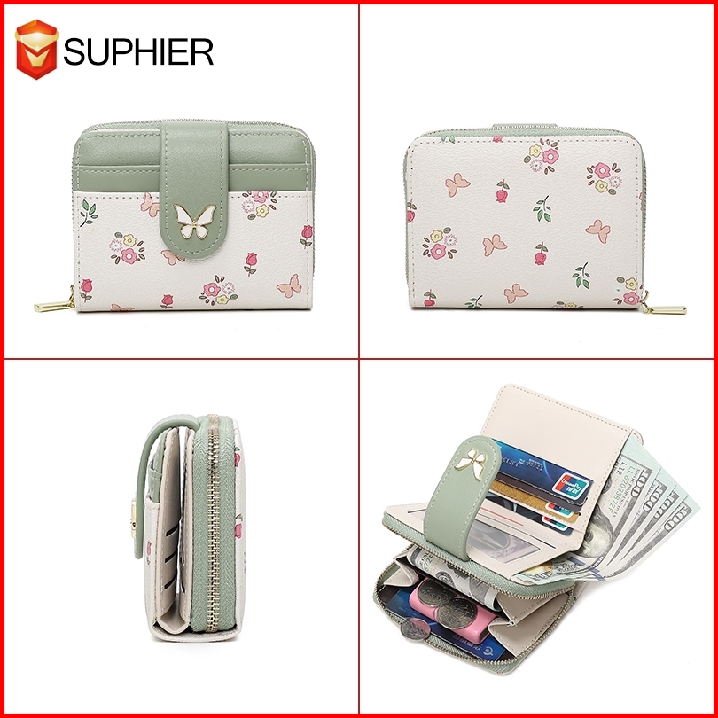 Suphiar Dompet Wanita Pendek Model Baru 2025 Dompet Rantai Motif Bunga Kupu-kupu Gaya Jepang Minimalis Segar Tempat Kart