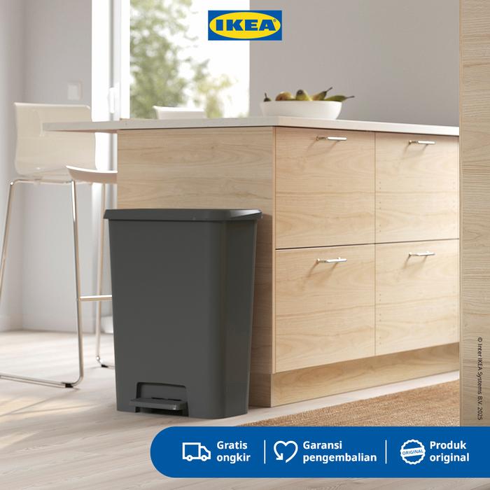 IKEA KNOCKLA Tempat Sampah dengan Pedal Abu-Abu Tua 50L Plastik