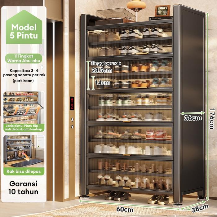 Lemari Sepatu Susun Tertutup Anti Debu Baru Lemari Sepatu Baja Lemari Penyimpanan Serbaguna - ABU-60*176cm-11Layer