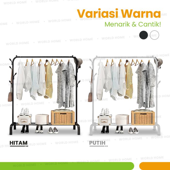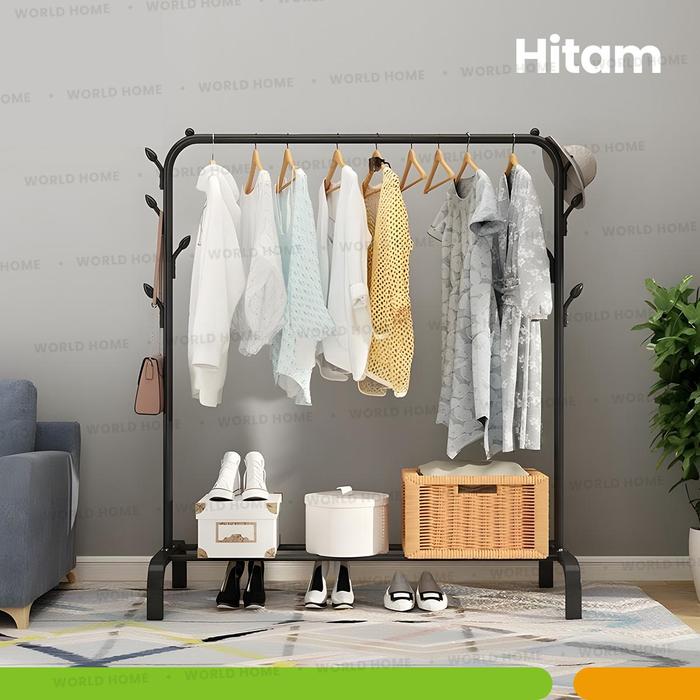 WORLDHOME Gantungan Pakaian Model Gawang Gantungan Baju Bahan Besi / Stand Hanger Single Rak Untuk Sepatu - HITAM